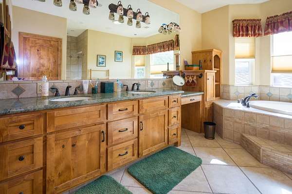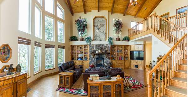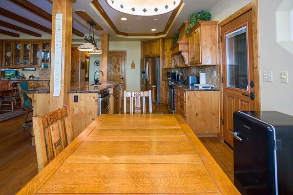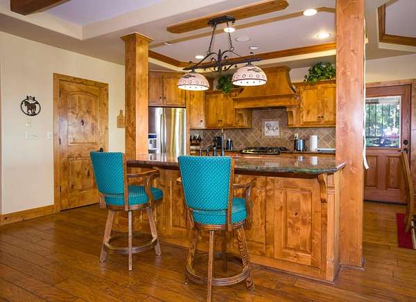 - Balcony, Beamed Ceilings, Bookcases, Breakfast Bar, Ceiling Fan(s), Granite Counters, High Ceilings, Kitchen Island, Kitchen Open to Family Room, Open Floorplan, Pantry, Recessed Lighting, Stone Counters, Tile Counters, Vaulted Ceiling(s)
