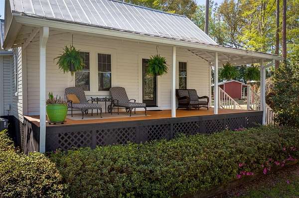 Lovingly renovated with 11’ ceilings, a bright sunroom which can serve as a third bedroom or office, brand new LVP flooring throughout, high-end upgraded kitchen, three board wood fence with no-climb wire, stunning front and back porches and a 3 stall barn and tack room. New Carrier A/C installed in 2024. House recently painted inside and out. Move in ready!