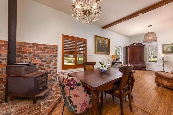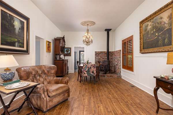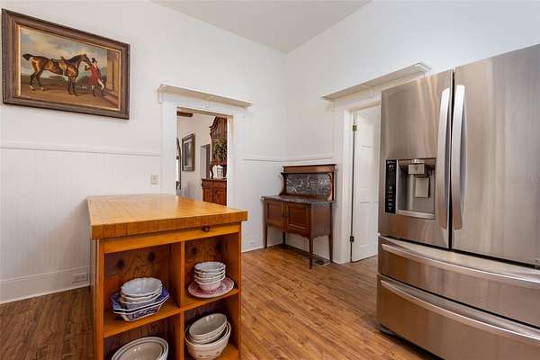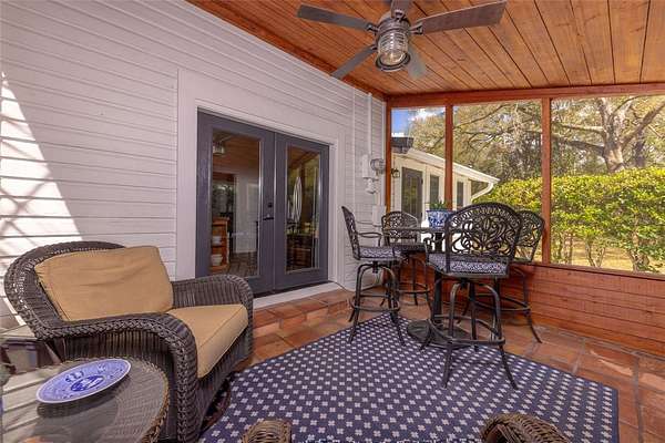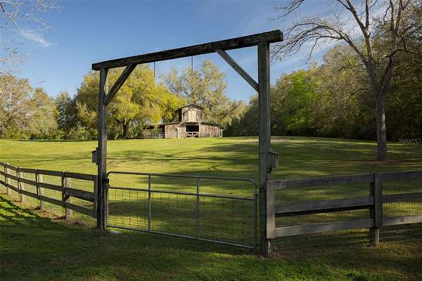Porch time, nature and horses are a way of life at this beautifully restored 1927 “Cracker style” farmhouse nestled on 5 lush acres between Newberry and High Springs, Florida. A beautiful front porch overlooks rolling pastures and a vintage stye horse barn with three stalls and a tack room.