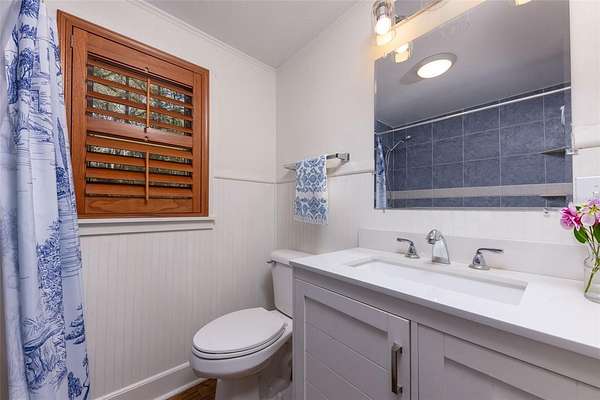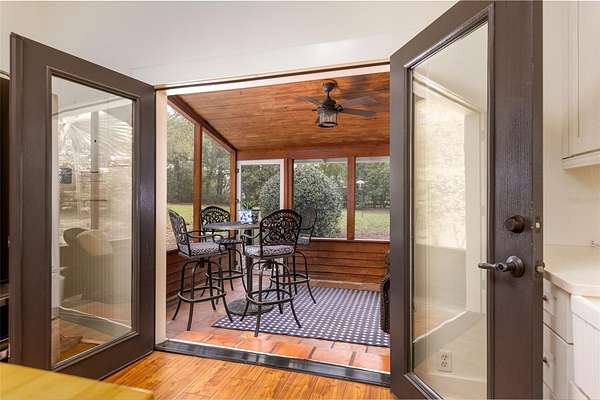 There is a cedar lined, screened back porch adjacent to the fully renovated kitchen. Sunny double French doors connect the two.