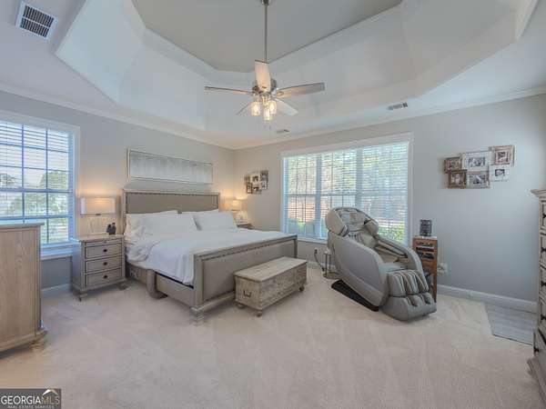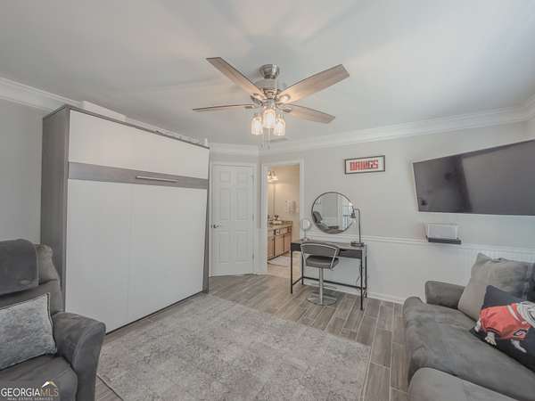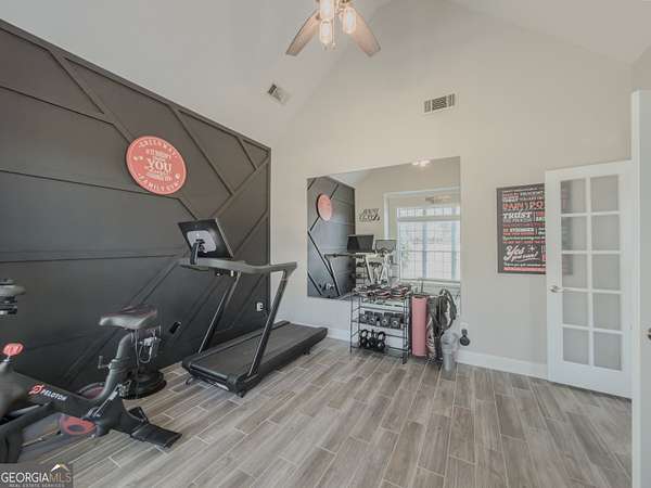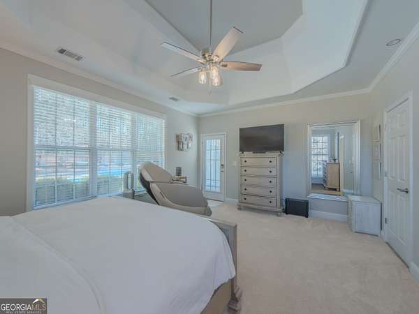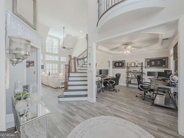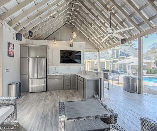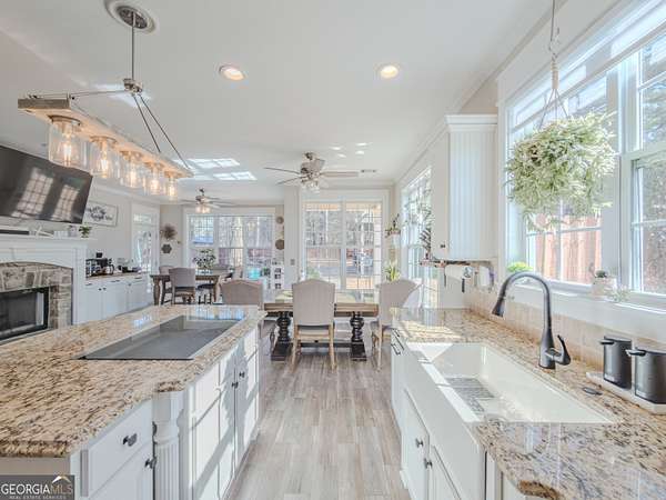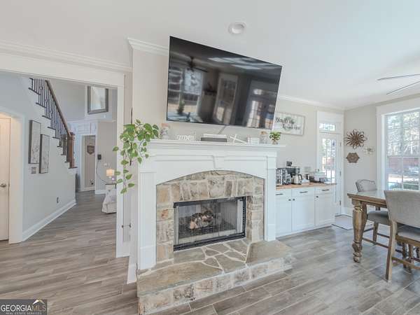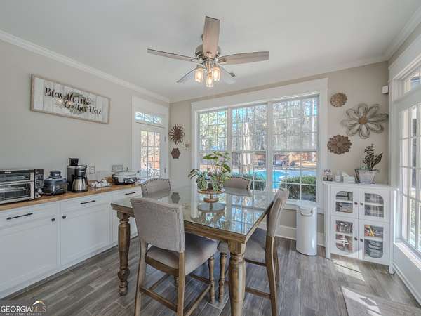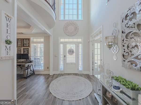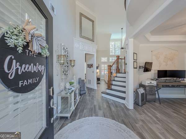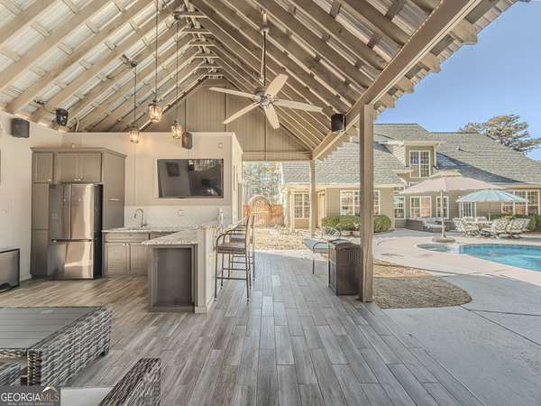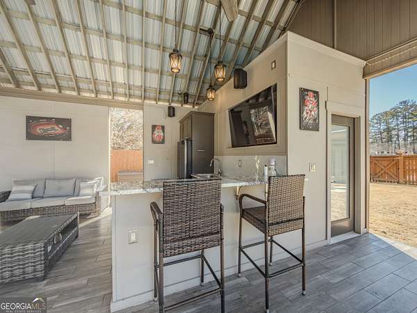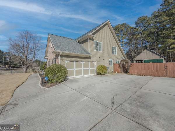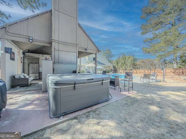 No HOA private resort on 1.5 acres with a saltwater heated pool, updated bathhouse, and a fully renovated outdoor living room designed for year-round enjoyment. This turnkey luxury home features an impressive two-story foyer and a dramatic two-story family room with a see-through stacked-stone fireplace connecting to the kitchen/keeping area-an ideal layout for both everyday living and entertaining. The home has been thoughtfully updated throughout with tile plank flooring, custom trim, and fresh interior paint. The kitchen has been newly painted and offers granite countertops, tile backsplash, an island, built-in desk, and a second pantry for added storage. A formal dining room with tray ceiling and a vaulted living room/office with French doors provide flexible spaces to meet a variety of needs. The primary suite on the main level includes patio access, a vaulted bath with double vanity, garden tub, and separate shower, plus a new custom closet system. Additional bedrooms are well-sized, including a loft/optional fourth bedroom with French doors opening to a Juliet balcony, and bath access that includes Jack-and-Jill and an en-suite option. Outdoor living is the showpiece: the renovated covered entertaining area includes an updated outdoor kitchen, fireplace, and bar, all just steps from the pool with a new liner and the refreshed pool bath. The backyard is fenced and includes outbuildings/storage sheds, with the lot extending beyond the privacy fence gate for even more space. Additional upgrades include a professionally epoxy-coated garage and a roof approximately three years old. Convenient to shopping, dining, and Tribble Mill Park with trails, lake, biking, and equestrian amenities.