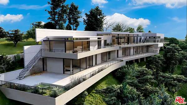 Stunning View Lot Above Trousdale Estates Perched high on a private gated road, this extraordinary view lot comes RTI-Ready to Issue with all approved plans, studies, and reports included. Designed by world-renowned architect Gerhard Heusch of Heusch Inc., this architectural masterpiece offers over 7,000 sq. ft. of living space and an additional 5,760 sq. ft. of outdoor living areas. The proposed Architectural estate features 6 bedrooms, 8 baths, a 3-car garage, pool, spa, home theater, gym, and wine cellar, all seamlessly integrated with expansive decks for effortless indoor-outdoor living and entertaining. Enjoy breathtaking panoramic views stretching from the city skyline to the Hollywood Sign and beyond. A rare opportunity to own a piece of architectural artistry in one of Beverly Hills PO's most coveted and private enclaves.