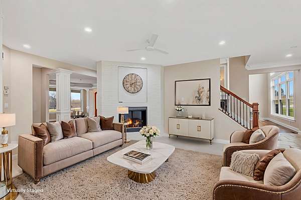 Luxury Living Redefined this 6K+ Sq Ft Masterpiece on 3+ Private Acres. Experience the perfect blend of architectural grandeur and modern comfort in this estate. Many new updates including a new roof. From the moment you pull under the towering 20-Foot arched stone porte-cochere, you'll realize this home is in a class of its own, overlooking a tranquil lighted fountain pond. It's the ultimate retreat, just minutes from 42 and the interstate. Features 10-foot ceilings and soaring spaces designed for impact. The Great Room has a breathtaking two-story massive fireplace with a custom mantel-to-ceiling mirror. Masterful entry with a spacious foyer with marble inlays. Kitchen has a chef's layout with a spacious dining room and a separate bright breakfast room with 2 skylights and a walk-in Pantry. The kitchen leads to a screened-in porch for morning coffee. A private office that features a unique iron spiral staircase leading up to a dedicated hobby/craft room. The owner's wing suite is a private sanctuary in luxury featuring a cozy sitting room with its own fireplace. His and Her Closets and a private walk-out balcony perfect for watching the sunset. There's a second set of 5-foot-wide stairs that leads to the ultimate lower level featuring a theatre room, a huge gym/playroom area, pool table space, nice size bar, and a card/gaming nook. There is also an ensuite with huge windows and a full bathroom with a steam shower. The double doors lead to the back patio, a meticulously landscaped yard, fire pit, and a pond for fishing. There's a 4-car garage with a massive 1,400+ sq ft loft, ideal for parties, a studio, or a guest suite. Whether you're hosting movie night, friends gathering, or enjoying a quiet evening by one of the four fireplaces, or watching the sunset, this estate offers a level of peace and beauty that is rarely found so close to city convenience. It takes viewing this home in person to really feel the ambience this property offers. It's like no other!
