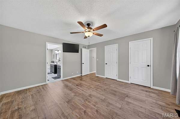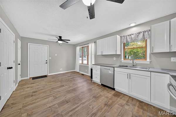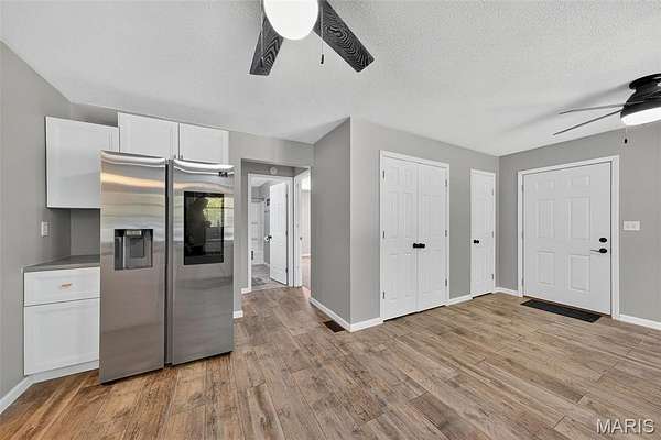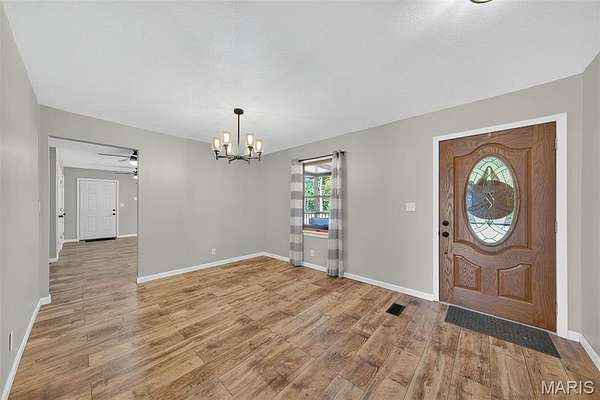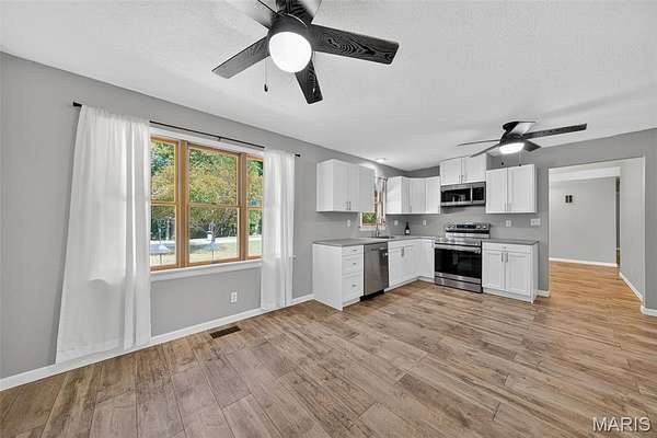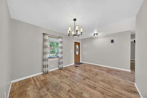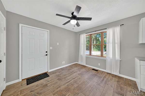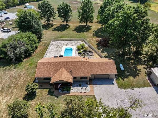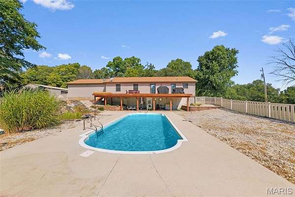 Welcome to 2424 Trout Camp Road in Waterloo, IL! Set on 5 serene acres with tree-lined frontage, this 3 bedroom, 2.5 bath home offers the perfect combination of country privacy and modern updates. Just 12 minutes to all the dining and shopping of charming downtown Waterloo, IL. Or hop on Bluff Road for a short 30 minute commute to work, professional sports, concerts, museum, and exceptional dining opportunities in St. Louis. Outdoor Living at Its Best!! The hightlight of this property is the incredible views and the the inground fiberglass pool (new pump 2023, heater hookups ready). A 14x47deck spans the back of the home overlooking rolling the fields and breathtaking sunsets. Stylish & Functional Interior: The remodeled kitchen impresses with timeless white cabinetry, composite countertops, stainless appliances (Samsung Smart electric range, refrigerator, microwave & dishwasher), stainless sink, and a spacious pantry. Split bedroom floor plan. The primary suite features dual closets and a fully remodeled bath with new vanity, tub, shower, toilet, and lighting. The living room is cozy with a shiplap fireplace with electric insert and access to deck. Luxury Vinyl Plank flooring runs throughout much of the main level. The walkout basement is mostly finished and freshly painted--perfect for a recreation area, office, playroom, or hobby space. An oversized 24x28 garage plus a 40x27 outbuilding provide excellent storage, workshop, or hobby options. Modern Comforts & Connectivity with HTC Fiber Internet for reliable high-speed service (ideal for remote work, streaming & gaming). Newer Roof (2019) & HVAC (2018). Public water (Fountain Water District), private septic, propane tank. Located in the Valmeyer School District. No restrictions (other than county). Don't miss the opportunity to enjoy the best of country living with modern conveniences--all just a short drive to town!