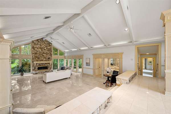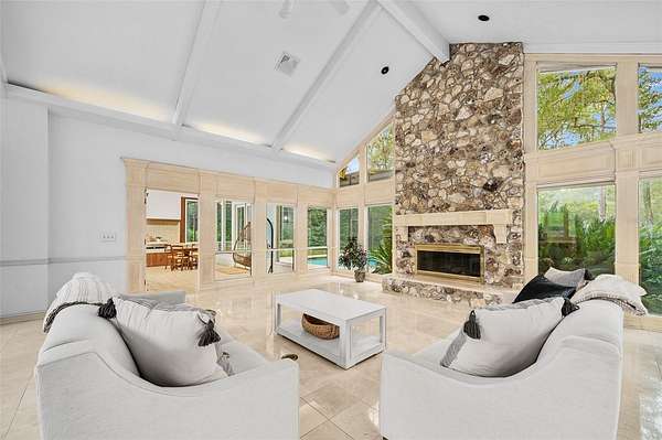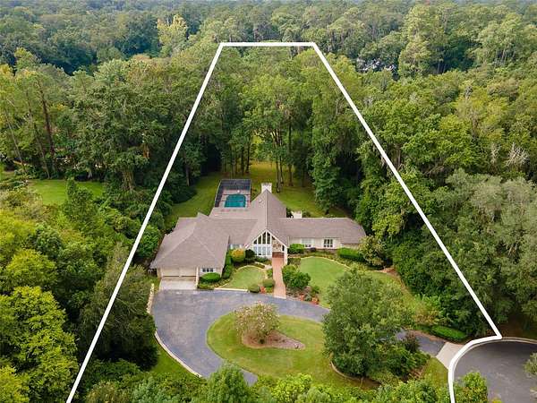 Welcome home to this exquisite 4-bedroom, 2.5-bathroom pool home with a sunroom, tucked away in the serene and highly sought-after Fox Grove neighborhood--nestled behind Brywood.** Perfectly positioned at the end of a quiet, tree-lined cul-de-sac, this stunning residence sits on a spacious lot surrounded by other beautiful, established homes, offering a wooded backdrop that enhances both privacy and natural beauty. A circular driveway leads to the elegant entrance, where the home's signature stonework makes a striking first impression and continues inside to the inviting foyer. Step into the soaring living room featuring vaulted ceilings, a dramatic floor-to-ceiling stone fireplace, and expansive views of the lush property beyond. The luxurious primary suite is a true retreat--complete with a private fireplace in the sitting area, sliding doors opening to the back patio, two generous walk-in closets, and a spa-like bathroom with a jacuzzi tub. The spacious living room offers multiple sitting areas and a full wet bar that can be seamlessly tucked away, making it ideal for both entertaining and everyday living. Outside, relax or entertain by the sparkling pool surrounded by peaceful wooded views or on the durable Trex decking open patio, all while knowing the home is protected with a whole home generator. This home offers a perfect balance of tranquility and convenience, with unbeatable proximity to UF, UF Health, Fresh Market, Publix, Thornebrook Village, top-rated schools, parks, and shopping centers. Experience refined living in one of Gainesville's most desirable neighborhoods--where natural beauty meets everyday luxury.