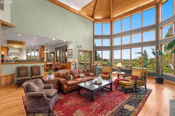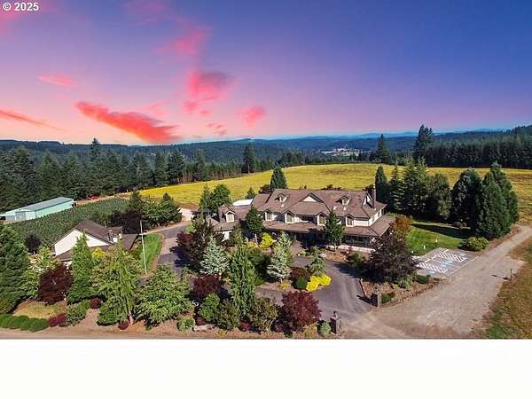 Unobstructed Mt Hood View! Landmark Opportunity to Own 80 Acres of Gentle Rolling Land. The Stunning Gracious 53 Room Residence Provides REAL Finishes Throughout, Wood, Stone, Craftsmanship at Every Turn. Gourmet Kitchen w/ 2 Dishwashers and 2 Laundry Rooms. Floor to Ceiling Windows Bring the Outdoors and Sunlight Into Your Day to Day Moments. Expansive Level Grounds and Gardens, Circular Drive, Separate Guest Residence, Large Barn 96X60 Room for 7 Stalls Plus Tack Room and Private Roads. An Income Producing Lifestyle, For the Doer! Suitable as Large Compound for Extended Family Living or an Events, Retreats, B/B Business, PLUS Potential Christmas Tree Income.(Seller Retains Current Harvest Rights) So Near, Yet Far Away From the Busy City Life, with Tranquility and Space to Breath Your own Air! Not a Neighbor in Sight! Your Own Private Paradise for Those Who Require it!