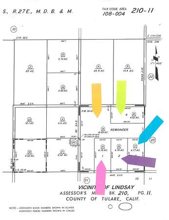Take Tulare Rd(Ave 232) east through Lindsay to Foothill Ave(Rd 228) and go south(1 mile) to Ave 224. Proceed east to Road 242 and turn left. Go approximately 1 mile to the property which will be on the right side. Entrance to home is on Avenue 234.