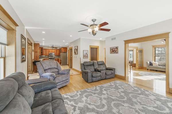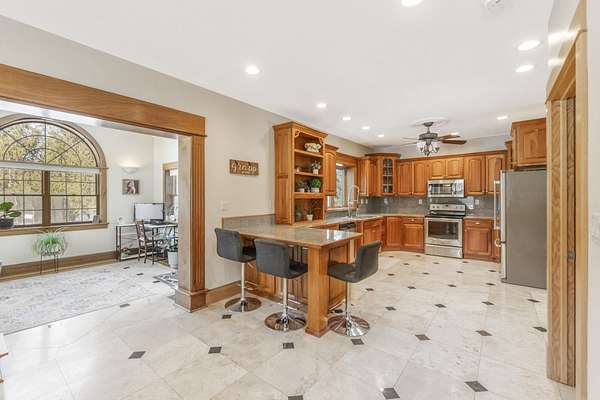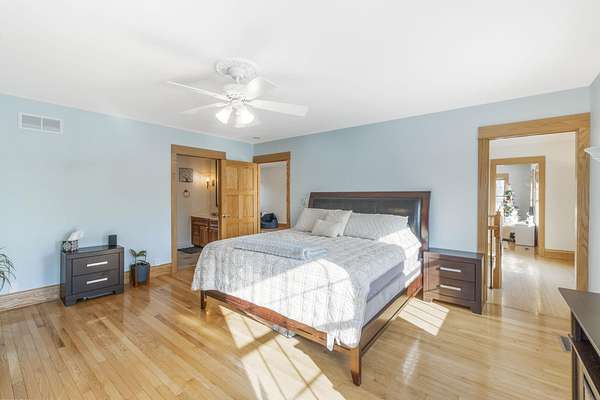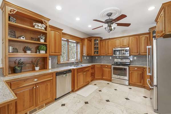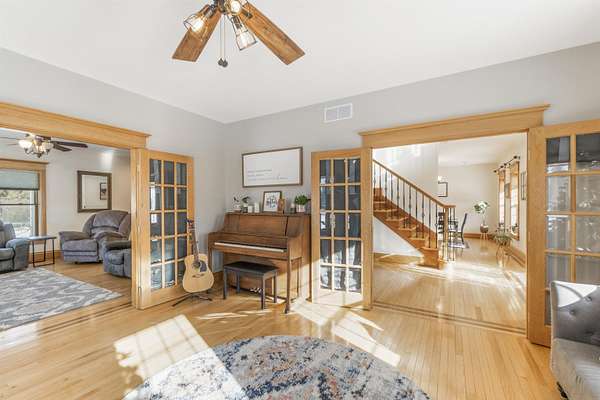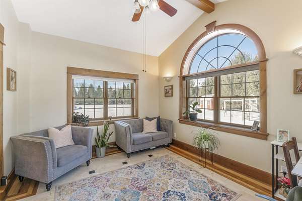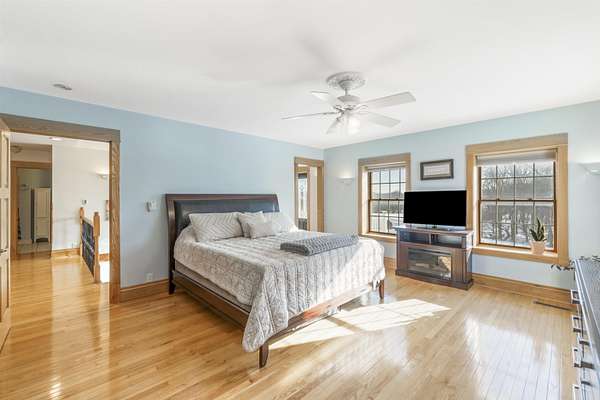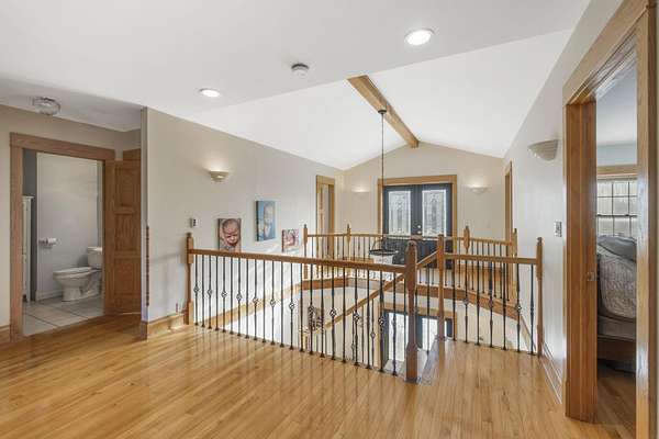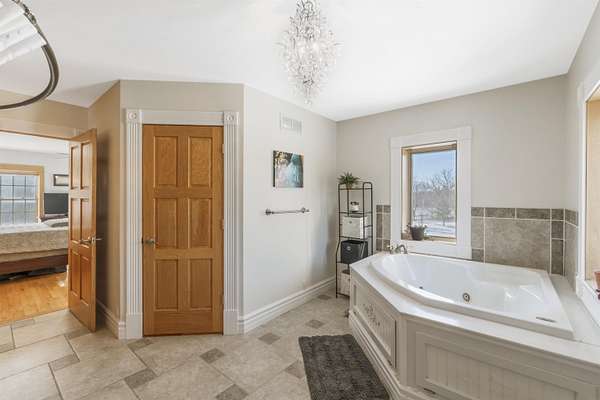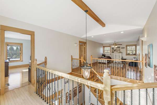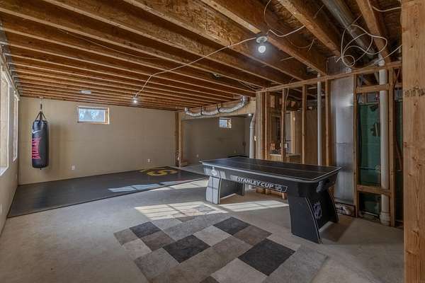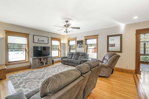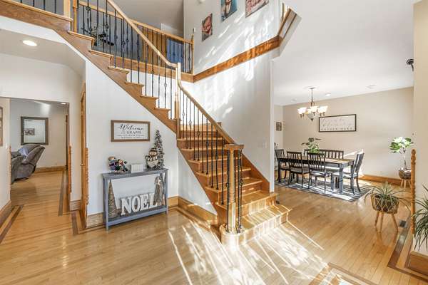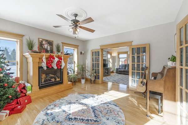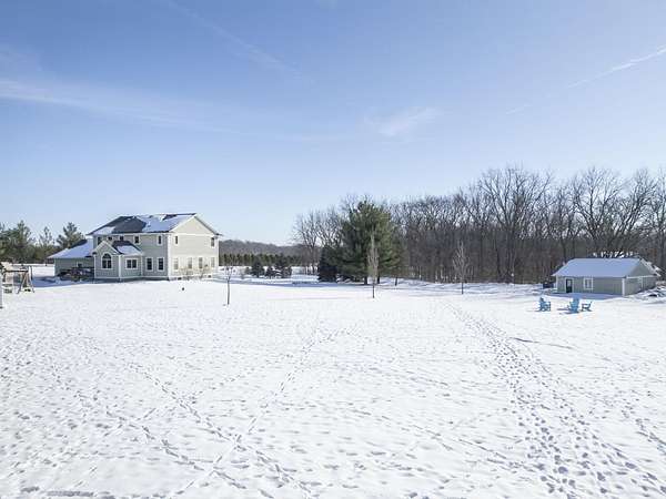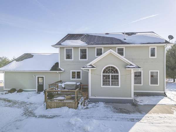 Imagine a home that combines beauty, comfort, craftsmanship, and a touch of nature into one stunning package. This residence features a thoughtful design that includes three spacious bedrooms, three bathrooms, and a magnificent four-season room that seamlessly invites the outdoors inside. More than just a place to live, this home creates a lifestyle that can be cherished for years to come. From the moment you enter, the warm ambiance of this home captivates the senses. Solid wood floors and tile throughout the main level create an inviting atmosphere. The kitchen is equipped with stainless steel appliances and a charming farmhouse sink. A gas fireplace in the living area adds a cozy touch, making it perfect for family gatherings on chilly evenings. Natural light floods the rooms through an abundance of windows, enhancing the beauty of the property. The French front door with stained glass offers a unique charm that is sure to impress guests. Upstairs, you'll find a serene retreat with three bedrooms, each featuring walk-in closets and darkening blinds for restful nights. The master suite, complete with a bathroom, a walk-in shower, and a jetted tub, serves as a perfect escape after a long day. The landing area can be transformed into a cozy movie space or play area, allowing for flexible family activities. The three-zone heating system ensures comfort throughout the home, allowing for personalized temperature control in different areas. Step into the basement. This unfinished area is full of opportunity. The walls have been studded and are ready for a fourth bedroom, bathroom, and living room to be finished. But this area is also a great space for outdoor activities in the basement. Come check it out. The outdoor space is equally impressive, featuring a detached two-stall garage with an indoor wood burner for additional warmth in the winter months. The concrete-stamped fire pit invites evenings spent under the stars, while the surrounding evergreens provide privacy. Friends and family will enjoy the playset, and the chicken coop adds a touch of rural charm. This property is more than just a house; it is a place where memories can be created and cherished.