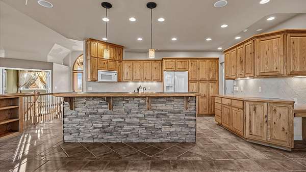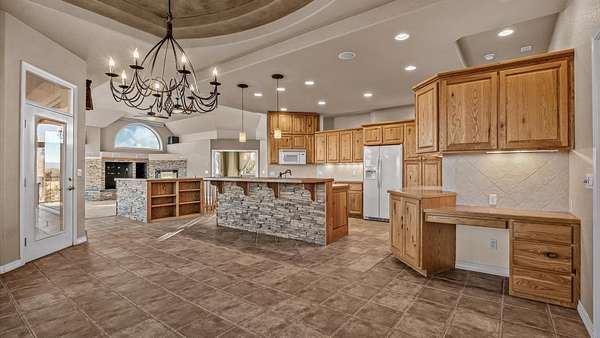 Discover the rare opportunity to live, work, and play on this outstanding 22-acre estate that combines wide-open space with urban convenience, just minutes from hospitals, dining, and entertainment. The 3,818-sq-ft custom-built home offers the opportunity for main-level functionality with an inviting living room and fireplace, a spacious kitchen with adjacent stunning dining, and a primary suite with private deck access. The finished walk-out lower level adds a family room, wet bar, two bedrooms, a kitchenette, and a huge storage area -perfect for guests or multi-generational living. Outdoors, enjoy sweeping views, a covered deck and patio, horse-friendly pastures, RV hookups, and a 50*30 shop accessed via a heavy-equipment-rated bridge-ideal for entrepreneurs, hobbyists, or agricultural pursuits. Whether envisioning a private retreat, an equestrian estate, or a future development opportunity (1-acre density potential, buyer to verify), this property offers endless possibilities. All information subject to change/error, buyer to verify all details.