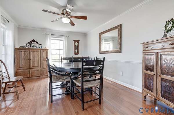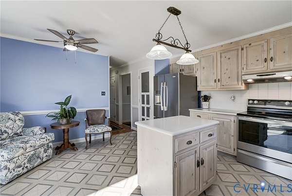 - Bedroom On Main Level, Ceiling Fans, Double Vanity, Eat In Kitchen, Fireplace, Kitchen Island, Pantry, Separate Formal Dining Room, Solid Surface Counters