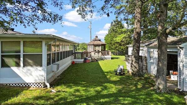 Perched between expansive 30-acre soybean fields on both sides, the 2,760 square foot house and basement two-car garage serve as the heart of a cherished family legacy spanning five generations. This property has 80% TIMBER. This extraordinary property sprawls across 153 ACRES OF PRIME COUNTRYSIDE, offering a haven for abundant wildlife. Whitetail deer are drawn to a natural spring, creating a serene backdrop against the backdrop of rolling hills. Adding to its allure, a hidden cave shelters a tranquil pond, providing a serene retreat within the landscape. Steeped in history and nestled amidst nature's splendor, this property is a RARE GEM, unmatched in its beauty and heritage, offering a sanctuary where generations of memories intertwine with the timeless rhythms of the land.
