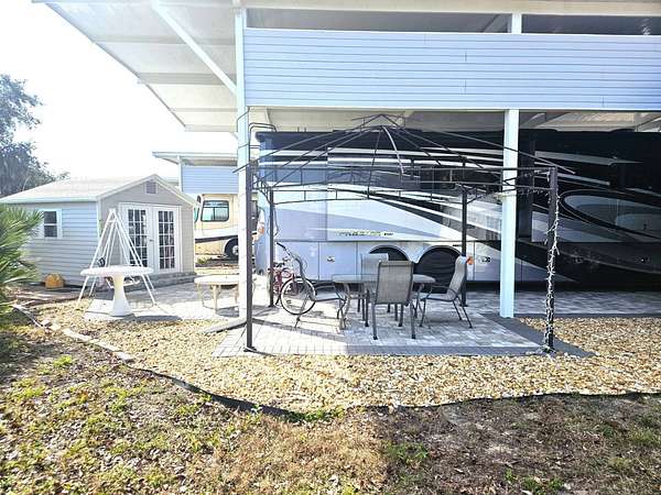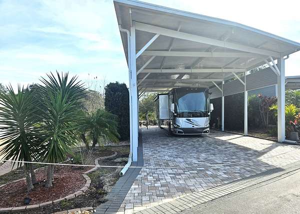 If you've been searching for an outstanding spot for your Class A RV, look no further! 2427 St George Dr, located in the 55+ Regal Pointe Community at Deer Creek, has everything you've been looking for and more. Overall, the property is over 4,140 sq ft, already developed with an oversized 27' x 60' RV port, goregous upgraded pavers, irrigation system, and even a 10' x 12' utility shed in place, all just waiting for you to back your RV in, connect to full 50 amp service, and relax! The lot backs up to a wooded area at the backside of the property, providing great privacy while enjoying your time outside. The Regal Pointe Community is exclusively for Class A RV's, as well as site-built homes. Available to the residents is a beautiful clubhouse, heated pool, workout room, laundry center, and many planned seasonal activities. This is a golf cart friendly community, with quick easy access to restaurants, banks and shopping. Amenities include golf, tennis, pickleball, shuffleboard, driving range, tiki bar, and many planned seasonal activities are available. **...As a sidenote...the adjacent property (2421 St George Dr) is also for sale, making this the perfect scenario for someone searching for one lot for RV parking and the other for building a home or casita. Call or text today to view this great opportunity!
