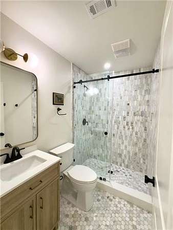 Inside, the open-concept layout features white quartz countertops, stainless steel appliances, a farmhouse sink, a built-in Lazy Susan, luxury vinyl + ceramic tile flooring (no carpet), 9-ft ceilings, and custom tile showers. Bright, clean, low-maintenance, and move-in ready.