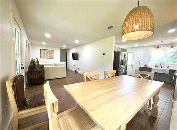Fantastic for a private estate, family compound, recreational retreat, or long-term land hold, the property features a private pond, full utilities, slab foundation, metal roof, and modern finishes including quartz countertops, luxury vinyl plank flooring, and custom tile.