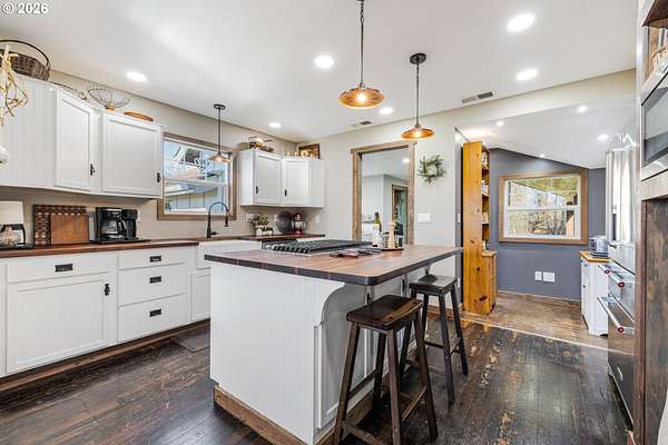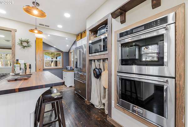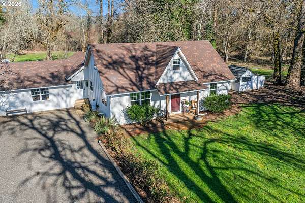 Set on 20 picturesque acres, this exceptional property offers a rare blend of privacy, functionality, and natural beauty - an ideal haven for animal lovers and hobby farmers alike. Mill Creek meanders through the property, creating a peaceful setting, while easy access to the Yamhill River adds to the appeal. Water rights further enhance the long term value and versatility of the property. Designed with equestrian use in mind, the property features a 5-stall barn with a tack room, a round pen, and is fully fenced and cross-fenced, allowing for efficient pasture management and ease of use. Additional infrastructure includes a chicken coop, 3 loafing sheds, greenhouse, raised beds, additional garden space, and established fruit trees, making this property well suited for a self-sustaining lifestyle. The two-level, 3-bedroom, 3-bathroom home offers comfortable living with a practical and welcoming layout. The family room features vaulted ceilings, creating an open feel that enhances the main living space. Recent improvements include a new roof and new windows, along with updated bathrooms with tile flooring. The chef's kitchen features a gas range with dual ovens, complemented by a large central island and wood countertops, offering a well-appointed space designed for both everyday living and entertaining. The home is well equipped for year-round comfort including two furnaces and heat pumps, as well as two hot water heaters, providing efficiency and reliability. Thoughtfully maintained and well laid out, this residence offers a solid blend of comfort, function, and modern updates. Whether you're seeking a turnkey equestrian setup, a peaceful country retreat, or a well-equipped hobby farm, this property delivers the space, infrastructure, and setting to support a rural lifestyle without sacrificing convenience.
