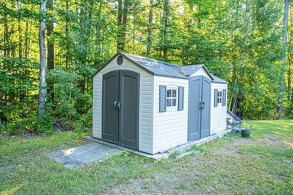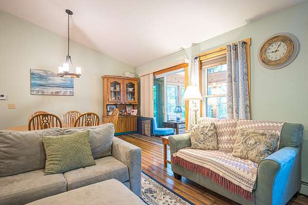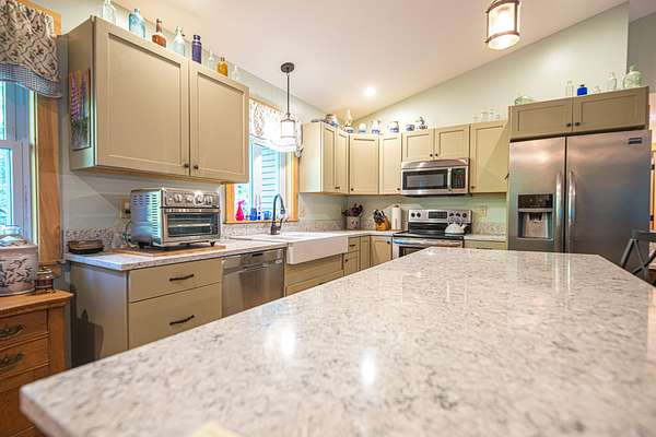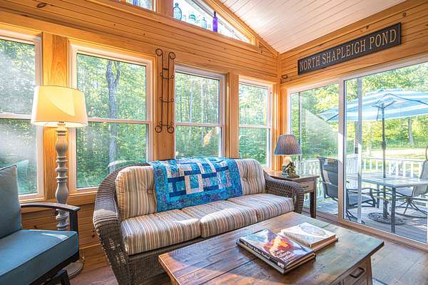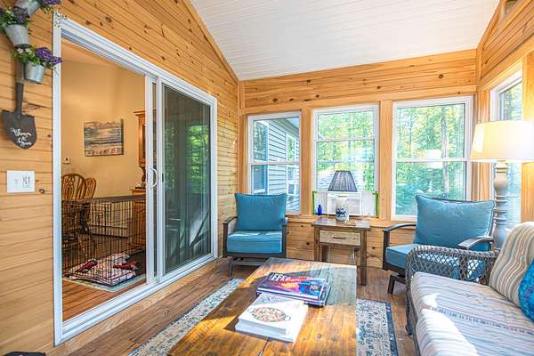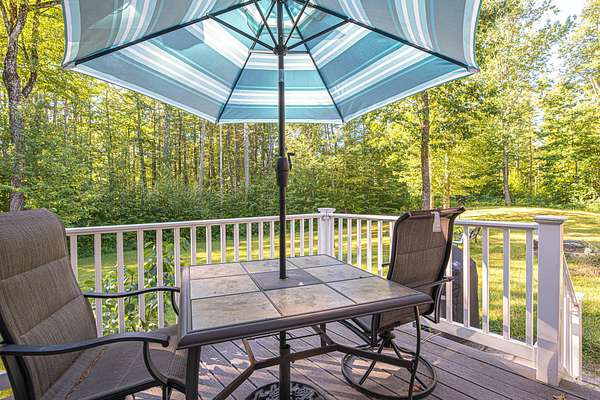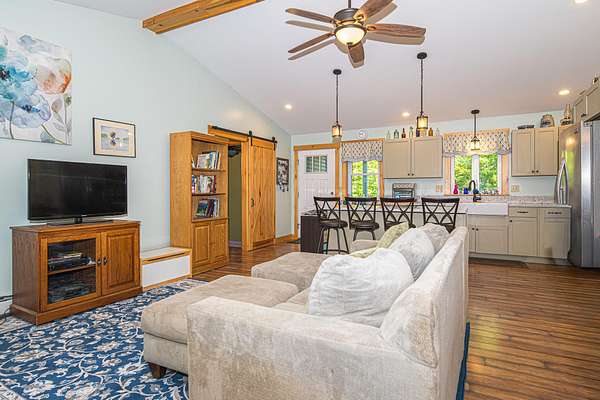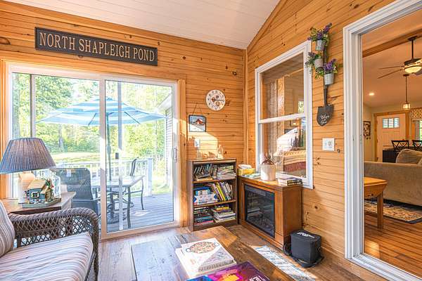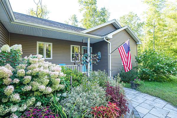 Surrounded by nature and beautifully landscaped grounds, this 2016 ranch-style home offers privacy, comfort, and thoughtful upgrades. Inside, the home features cathedral ceilings and a pellet stove in the living room, setting the tone for a warm and welcoming atmosphere. The kitchen is a standout with a generous center island, upgraded stone countertops, and an open layout perfect for both everyday living and entertaining. Just off the living room, a 140 sq. ft. three-season sunroom provides additional living space filled with natural light and views of the wooded property. The primary suite offers a walk-in closet and private bath with a soaking tub, while two additional bedrooms, a full bath, and a dedicated laundry room with wash sink complete the main level. Recent updates include brand-new carpeting in all bedrooms. The full, heated, dry basement provides excellent storage with the potential to finish for additional space. A radon mitigation system, water softening system, and whole-house standby generator add peace of mind. With 15 acres to explore, this home combines the best of one-level living with a tranquil setting, just over 10 miles to the coast and 30 minutes to Portsmouth.