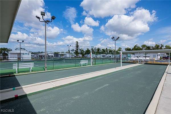 Build or park with confidence on this well-located deeded RV lot in Fountain View RV Resort, a well-established and professionally managed 55+ community. Lot #243 offers approximate dimensions of 36' x 62' x 35' x 62' and features a north-rear facing back-in concrete pad, ideally positioned near the clubhouse while backing to wooded privacy and the community golf driving range. The lot is fully improved with cable, water, sewer, and 50-amp electric service, and can comfortably accommodate up to a 38' RV, including Class A, Class C, Super C, fifth wheels, or a permanent manufactured home (subject to community and local guidelines). A key value-add is the new 48 sq. ft. permitted, hurricane-rated strapped shed, complete with washer/dryer and additional storage space-an uncommon and highly desirable improvement. Residents enjoy an active lifestyle with amenities including a clubhouse, community pool, spa/hot tub, bocce, shuffleboard, tennis, volleyball, basketball, and more. Optional RV and boat storage is available. Low HOA fee of $230/month includes lawn and land maintenance, on-site management, and use of recreational facilities. Conveniently located just minutes from downtown Fort Myers, shopping, dining, medical facilities, golf courses, and Southwest Florida beaches. An excellent opportunity to secure deeded land ownership and enjoy the Florida lifestyle.
