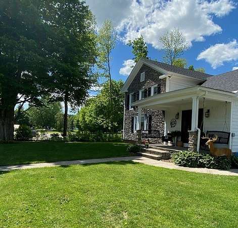 So many opportunities with this awesome and unique property on 9.35 acres in the Village of North Norwich, it is difficult to know where to start!1)Completely renovated three bedroom Farmhouse with high quality upgrades throughout, includes an inground pool with large patio and separate pavilion space. 2) Unbelievably cute and quaint one bedroom Guesthouse / AirB&B, 3) Renovated former Village Firehouse with 2,400sf of open span equipment storage or workshop & workout space, 4) Huge 120'x30' single story four bay barn for livestock or personal hobby opportunities. Please refer to the attached 3D Virtual Walk thru's, or copy the links below to your browser to view the Main House and separate Guesthouse:(Main House) House) Built in 1880, the Main House is highlighted by an open layout entry with large kitchen featuring custom Cherry cabinetry, quartz countertop, large eat-in island and hardwood flooring. Kitchen area opens to tastefully updated living room with barn door sliders and huge bright Family Room with Woodburning insert and access to patio and pool.