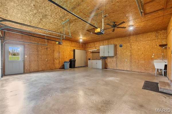 The basement provides incredible potential for additional living space, complete with a wood burning fireplace, walk-out access, and views of the extremely large and private backyard. You’ll also appreciate the ample storage and the convenient John Deere garage door, ideal for lawn equipment or workshop needs.
