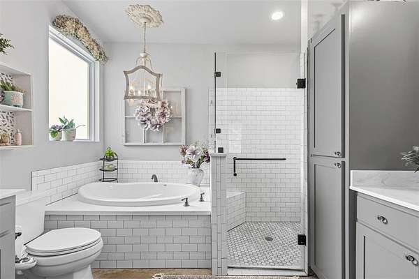 - Chandelier, Decorative Lighting, Double Vanity, Eat-In Kitchen, Kitchen Island, Open Floorplan, Pantry, Vaulted Ceiling(s), Walk-In Closet(s)