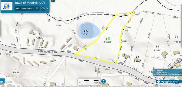 Est $408/mo3.24 acre residential parcel located on Leffingwell Road in Montville, CT. Zoned R80. Municipally owned property with no known improvements. Potential future use subject to municipal approvals and verification. Property is being sold as-is, where-is. Cash only. Conveyance will be by Quit Claim Deed with no warranties and no title search provided by the City. Please perform own diligence regarding zoning, utilities, and development potential.