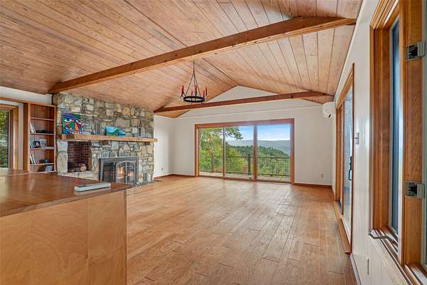 Total privacy, breathtaking long-range ridgetop views, dramatic waterfalls, and tranquil streams set this 96+ acre mountain retreat apart as a perfect spot for outdoor enthusiasts and nature lovers. With a main house, guest cottage, garage apartment, and rustic antique log cabin, each prominently situated along the ridge at an elevation of over 3,000 feet, this property is the ideal multi-generational family legacy property. DuPont State Forest is close by, with a trailhead less than 2.5 miles away, and the property is bounded by a large, private conservation easement on the eastern side. Over 2 miles of professionally built trails, both UTV and foot trails, link the homes on the ridge, an open meadow area and the property's bold streams with the natural beauty of the forests and falls. With its mature hardwood forest, the land is bounded on the north by bold, clear Williamson Creek and on the south by over 2,000 feet of beautiful Laurel Creek, which features three waterfalls. The stunning, private trio of falls are dramatic destinations for sightseeing, picnics, photography or tranquil reflection. The main house is designed for comfort and luxury, with hardwood floors, hand hewn beam accents, a free-standing wood stove, and expansive windows showcasing the amazing views. The guest cottage, with its equally terrific views and a rambling, comfortable floorplan, is ready for your creative updates. Additionally, the garage apartment, recently upgraded with wood floors and a new HVAC system, provides an excellent opportunity for guest accommodation or a creative workspace. The rustic cabin, set at the farthest end of the ridge and constructed with antique logs, adds a touch of history and authenticity to the property, making it an ideal spot for quiet contemplation or a cozy retreat. The property's location, situated between Brevard and Cedar Mountain, ensures easy access to amenities while preserving the tranquility and seclusion of your mountaintop escape. Whether you're seeking a peaceful retreat, a family compound, a truly dramatic outdoor recreation area or a place to pursue creative endeavors, this estate offers a wide range of possibilities.