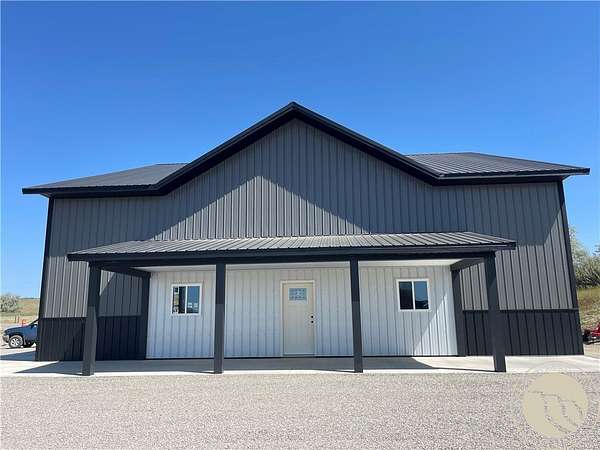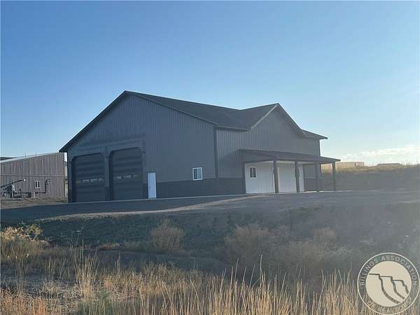 Newly constructed 3000 sf steel shop in active and growing west end community situated on a little over an acre with sweeping countryside views and easy access to Billings and Laurel. Dimensions are 60' x 50'. Shop side has 16'x14' and 14'x14' insulated steel garage doors plus insulated, steel-lined walls. Entire shop is studded 2'x 6' construction with 16' sidewalls and wired for power. Potential future living space has been plumbed for 1-2 bathrooms, a kitchen, a mechanical and laundry room, which may be completed as per buyer's needs with a builder of buyer's choice (finished construction is and septic system are not included in purchase price). Concrete monolithic pad foundation with 10' apron below covered porch. 2200 gallon cistern has been installed; irrigation water for landscaping; electricity and natural gas are in place. Buyer to perform own due diligence in regard to business use.