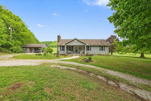 Charming home with acreage! Whether you are looking for a peaceful retreat or a mini farm, this 10.41 acre m/l, has much to offer! The 3 bed 3 bath home is perfectly situated overlooking the beautiful rolling fields. A few features of the home include a wood burning fireplace in the living room, hardwood floors, full walk out basement and beautiful porches in both the front and back. Enter the home into the shared living/dining/kitchen. The cozy living room and spacious kitchen provide an inviting area for entertaining. Down the hall you'll find two guest bedrooms and a full bath, as well as the primary bedroom with en suite bath. The unfinished basement has high ceilings and could easily be finished to double the living space. The basement has a full bath, laundry area and double doors leading to the back yard. The yard is adorned with mature trees, fire pit sitting area and a det. carport w/workshop. Located 3 mi. from town, 7 mi. from Dale Hollow Lake and 11 mi from Lake Cumberland. This home and property have been well maintained. Land is leased for hay. Lessee will have right to harvest 2025.. The 10.41 acres m/l, is cleared property and currently used for hay. The homes' location between Dale Hollow Lake and Lake Cumberland, makes this an ideal summer/vacation home! Call to schedule a private showing!