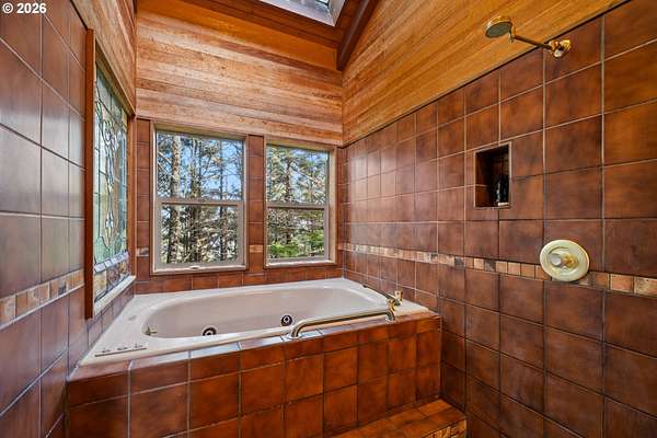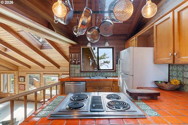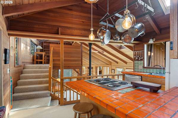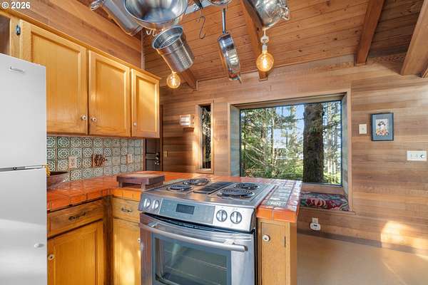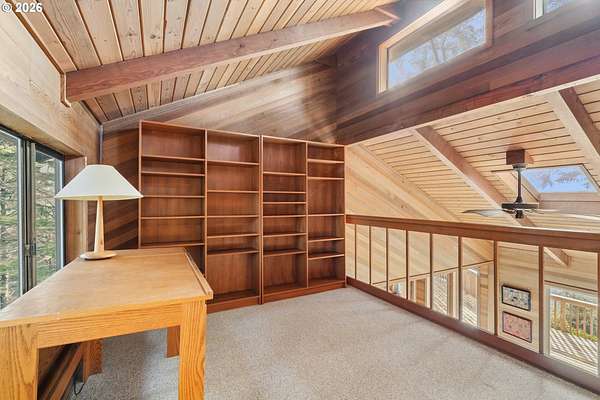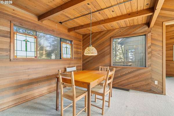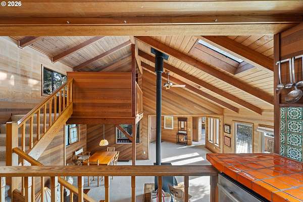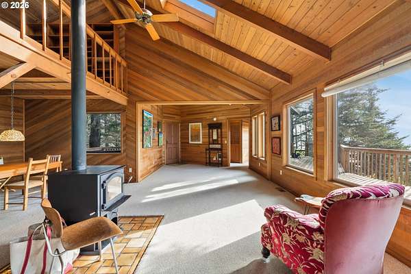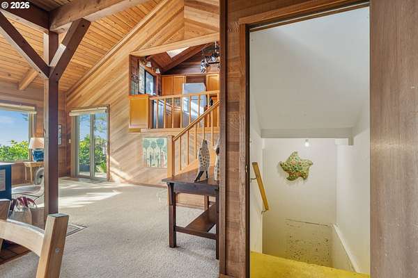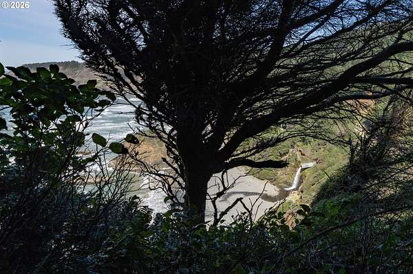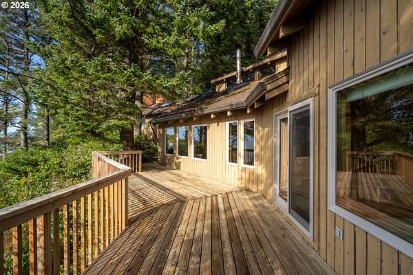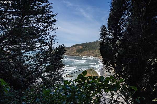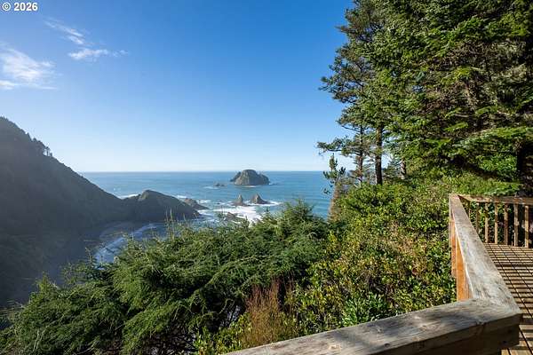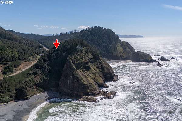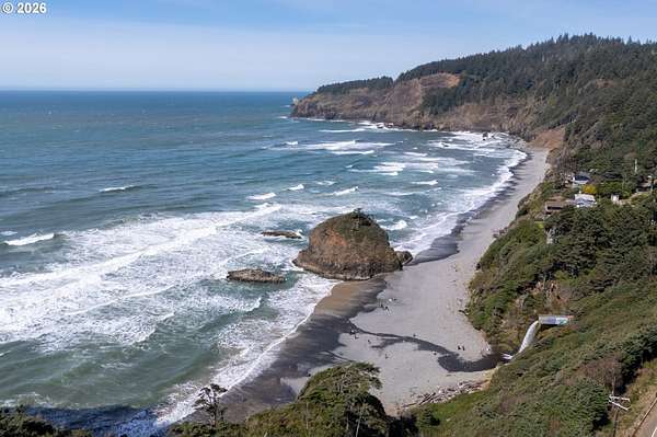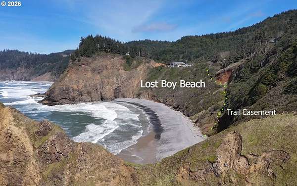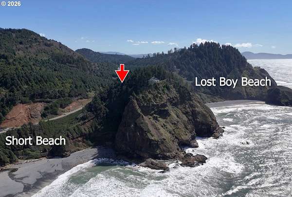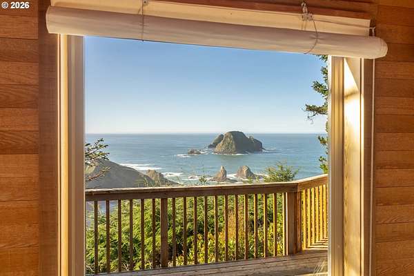 Est $7,945/moRARE GEM overlooking secluded Lost Boy Beach with private access easement to this cozy cove for only a small group of adjacent homes. Massive natural cavern and cove beach are only accessible to the easement owners except during minus tides. Own the North & South slopes of this ridge with SW view of Three Arch Rocks plus NW view of Cape Meares & Pyramid Rock. 2.5 acres (3 tax lots) with architectural design maximizing the view and natural wood features including tongue in groove beamed & vaulted ceilings. 440 sq ft partly finished ground floor space ideal for ADU.