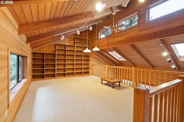 Est $7,790/moRARE GEM overlooking secluded Lost Boy Beach with private access easement to this cozy cove for only a small group of adjacent homes. Massive natural cavern and cove beach are only accessible to the easement owners except during minus tides. Own the North & South slopes of this ridge with SW view of Three Arch Rocks plus NW view of Cape Meares & Pyramid Rock. 2.5 acres (3 tax lots) with architectural design maximizing the view and natural wood features including tongue in groove beamed & vaulted ceilings. 440 sq ft partly finished ground floor space ideal for ADU.
