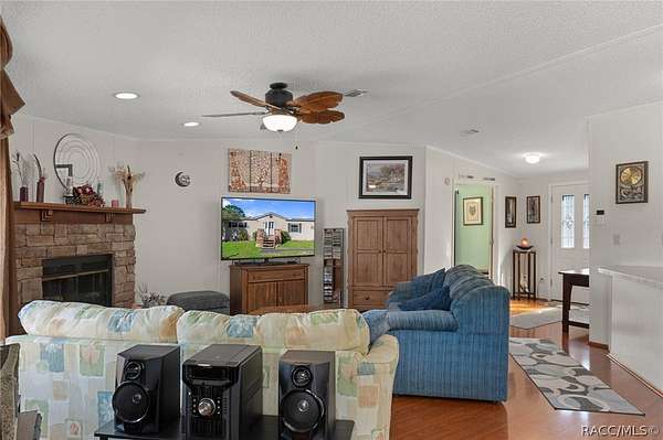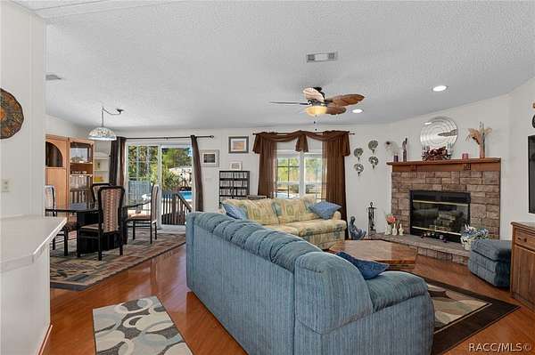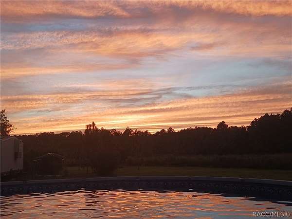 Welcome to peaceful country living! This 3-bedroom, 2-bath home offers 1,782 sq ft of living space and is situated on 1.99 acres at the end of a private dead-end street, providing privacy and plenty of room to enjoy the outdoors. The property backs up to almost 34 acres of county-owned land, adding an incredible sense of seclusion and natural beauty. Inside, you'll find an open floor plan with a spacious family room featuring a wood-burning stone fireplace, perfect for cozy evenings at home. The home also includes a formal dining room with sliding doors leading to the backyard, creating a great flow for entertaining. The kitchen features a center island, pantry, and all new dark stainless-steel appliances purchased in 2024. The kitchen and laundry room flooring were replaced in 2024 with durable vinyl flooring. Just off the kitchen is an inside laundry room with additional storage space. The layout includes two guest bedrooms with walk-in closets and a guest bathroom with a tub/shower combo. The primary suite offers a walk-in closet and an ensuite bathroom with dual sinks, a garden tub, and a separate shower. Major updates include the roof completed in 2021, AC replaced in 2022, and the septic pump and electric alarm unit recently updated. The driveway was newly paved in 2025. Outside, enjoy the Florida lifestyle with a 27-ft above-ground pool perfect for cooling off on hot summer days. The property also includes a 20x20 carport and a 24x36 storage building with electricity and a mini-split system, making it ideal for a workshop, hobby space, or additional storage. The pool, patio, and garden area are enclosed by a 6-ft wooden privacy fence, while the remainder of the property is fenced with 5-ft farm fencing, heavy-duty wood posts, and a 15-ft access gate. Nature lovers will appreciate the beautiful yard filled with citrus trees, perennial herbs, spices, flowering shrubs, raised garden beds, and abundant wildlife, including many species of birds that have visited over the years. This property offers a unique blend of privacy, nature, and space to grow, with some amazing sunsets, while still providing the comforts of home.