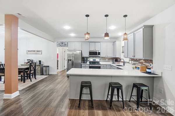 Some properties check a few boxes. This one checks the ones that are genuinely hard to find together: a custom-built ranch on over 4.5 acres with county water, no HOA, a fully equipped detached workshop, and a floor plan that actually works - all built in 2019, so there's nothing to update and nothing to worry about. About 10 minutes from downtown Lincolnton, this 2,149 square foot home offers four bedrooms, two full baths, and a half bath in a wide-open layout that lives larger than the square footage suggests. Inside, the living spaces flow together naturally. Luxury vinyl plank flooring runs through the living areas - durable, clean, and low-maintenance. The kitchen connects directly to the family room and dining area, with quartz countertops and a granite sink that elevate the everyday. The family room fireplace anchors the space without overwhelming it. The primary suite includes a walk-in closet and a private en suite bath with upgraded porcelain tile flooring. A whole-house surge protector adds a layer of protection that's rarely standard but always appreciated. Step outside and the property opens up. The screened-in rear porch overlooks a large, open yard framed by mature trees for natural privacy - with room for a pool. On 4.5 acres with no HOA and no restrictions, you have the space and the freedom to make it happen.For anyone who needs workspace beyond the house - this is the listing. The detached multi-bay workshop is a serious structure, purpose-built for cars, equipment, hobbies, or a home-based business. Combined with the three-car attached garage and a concrete parking pad, this property can comfortably accommodate boats, trailers, recreational vehicles, and everyday vehicles without compromise.County water. 4-bedroom permitted septic. Energy-efficient heat pump. All appliances convey - refrigerator with ice maker, dishwasher, electric range, and microwave. No HOA means no restrictions, no dues, and no permission required.