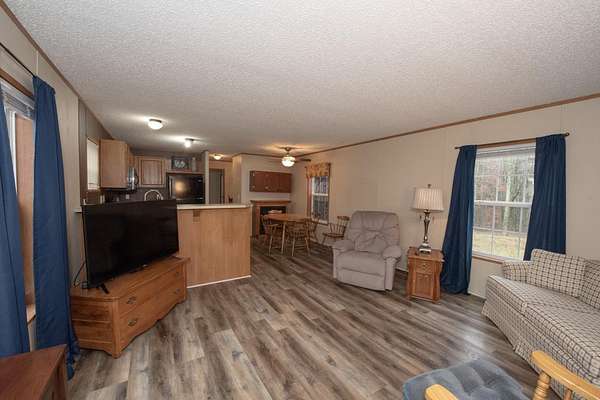 2 bedroom 2 bathroom home nestled on 2.4 acres in a beautiful county setting with access to a large community lake. All electric with a back up gas fireplace. 30 x 30 bldg finished interior with heat and air.