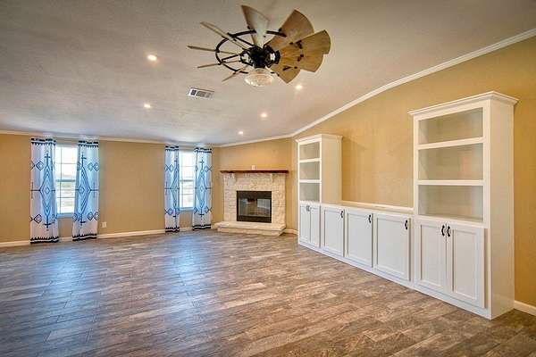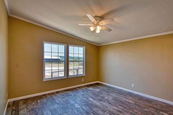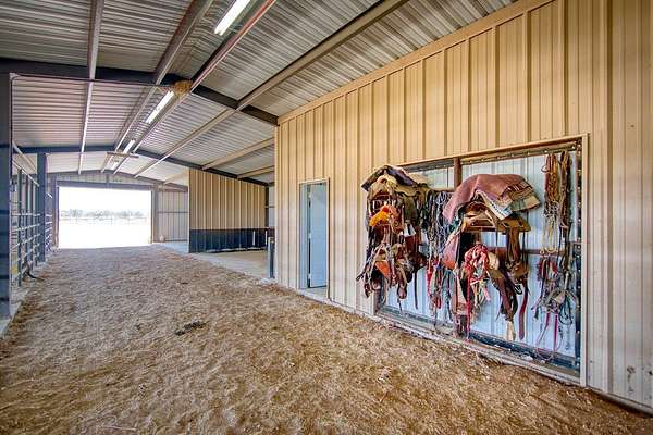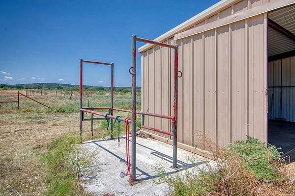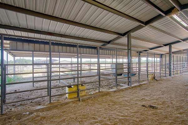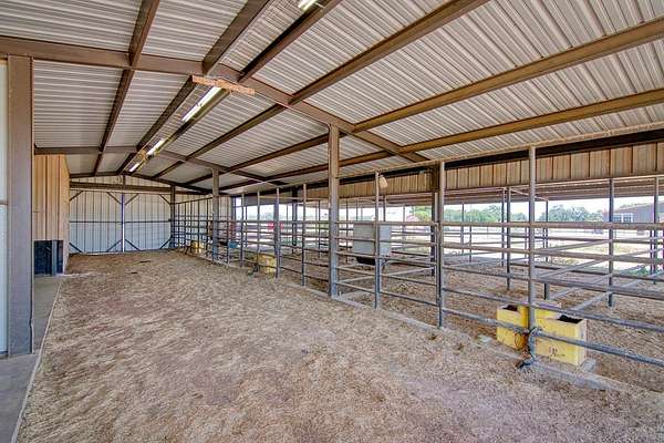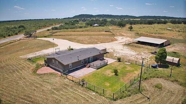 Located on 43.49 acres near London, Texas, this beautiful home, and improvements are the perfect combination for the horse enthusiast and those seeking peaceful, rural country life. The 2016 Palm Harbor triple wide home boasts well-appointed features such as granite countertops, stone fire place, wood look tile flooring, stainless appliances, and custom built-ins throughout. With four bedrooms, three full bathrooms, a versatile media/flex room, this 3192 sq. ft. home provides exceptional living with abundant space. A custom built six stall barn with turn outs is a horseman's dream! Ritchie Automatic waterers ensure your horses will be well hydrated no matter what the climate. The tack room features a revolving wall with plenty of room for your saddles and tack. There is also a wash rack, horse stocks, and hay room. The metal pipe arena with chute, holding pen and return alley is ready for your roping enjoyment. Two loafing sheds provide respite from the elements and there is a round pen for "schooling." The land is a great combination of sandy loam and scattered live oaks are home to deer, turkey, dove and other native wildlife.