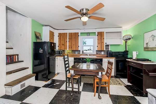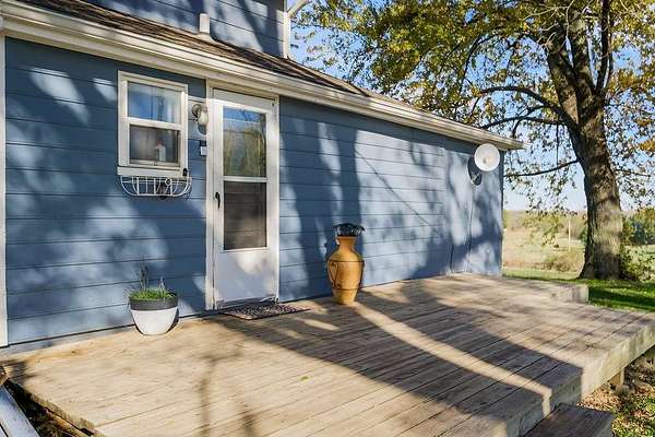 This is a great business opportunity.A lovely 1800's farm house with lots of charm.Beautiful setting incredible veiws ,mature trees ,Great outbuildings, pond, some fencing 11 rolling acres . Being sold in its present condition.There is a potential building site !Farm house cou;d be used as Hobby farm airBnB, rental.Easy commute to Legends, KC, Fort Leavenworth .