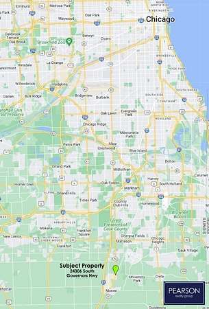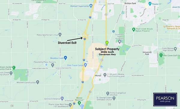 South from Chicago or north from Kankakee on I-57 to the Stuenkel Rd exit. E on Stuenkel Rd to Cicero. S approx 1/2 mile to subject property located at junction of Cicero and Governors Hwy.