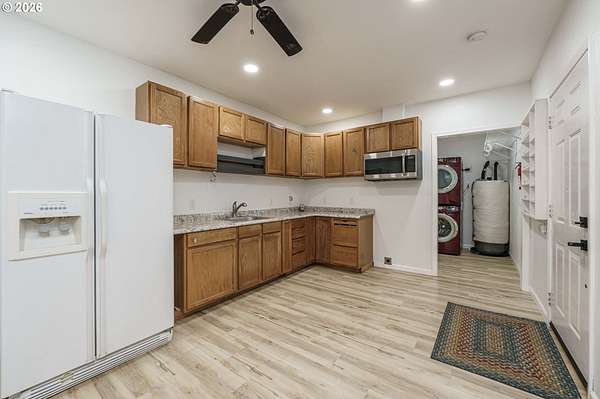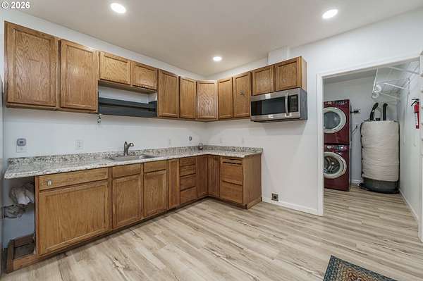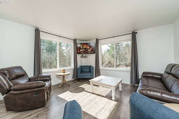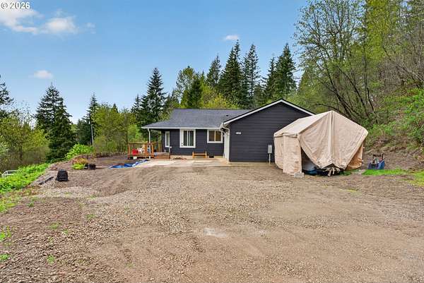 OPEN SAT 12-2:30!! Welcome to this rare and highly desirable 10-acre property, a ranch-style home built in 2023 w/ nearly 1,300 sqft w/ luxury finishes throughout. This exceptional property offers the perfect combination of privacy, functionality, and beauty, with picturesque valley and territorial views that provide a serene backdrop for everyday living. The home boasts 3 spacious bedrooms and 2 full bathrooms, all highlighted by stunning wide-plank laminate flooring and tall ceilings that create a sense of openness and elegance. Large windows throughout the home allow for an abundance of natural light, enhancing the airy, welcoming atmosphere. The kitchen is outfitted with quartz countertops and sleek stainless steel appliances, making it a dream for any home chef. Additional features include a large two-car garage, a convenient parking pad, and ample space for RV, boat, or toy storage, with an RV hookup already in place. Whether you have a passion for outdoor adventure or need space for equipment, this property has you covered. One of the standout features of this property is the massive 50x60 shop, equipped with enough power to handle any need, including two tack rooms, a reinforced 6-inch concrete floor, ensuring durability and versatility for a variety of uses. For added value and potential, the shop includes a 600 sqft guest space with 1 bedroom and 1 bathroom, a kitchen, and laundry facilities. This space is perfect for a home business or could be used for additional rental income. Zoned R-5, there are endless possibilities for expansion, with 5 acres already cleared and nearly ready for an additional build or potential lot split for resale. Despite its peaceful, private setting, this property is just 3.5mi from downtown Battle Ground, a short drive from grocery stores, schools, and major highways, making it the ideal location for both work and leisure. Don't miss your chance!