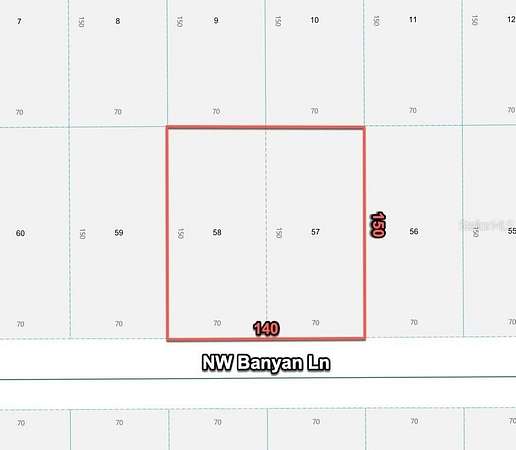 Two platted buildable lots together! Check out this double lot containing .48 Acres. Maximum peace and quiet on this dream property with a beautiful view of the woods. Electricity services are here and new homes are marching down the street! Build your dream home today, invest in your future, or both! Build your home on the double lot, build on one lot and divide off the other, or build separate homes on each .24 acre lot! Located in Dunnellon, Marion County, in the heart of North Central Florida. Enjoy the rural atmosphere, outdoor activities, and nearby attractions. An outdoor paradise awaits. Yet, shopping, dining, and excellent healthcare facilities are all nearby. Ocala, Orlando, and the Tampa Bay area are all an easy commute. Own it all today for a quick cash price of $24,900. That's way below market! The subject is a vacant lot and does not yet have an assigned address. The address is approximate, is based on online resources, and is for mapping purposes only. Use the address two lots to the east (on the south side of the road) of 24300 NW Banyan Ln to help navigate to the subject or use 29.187876, -82.525076 in your GPS or Goog maps to navigate directly to the property. The subject is located along the north side of NW Banyan Lane, approximately 560 feet east of Redwood Road in Dunnellon. The subject is the double lot on the north side of the road, approximately 140 feet west of the residence that has an address of 24300 NW Banyan Lane. From the corner of US 41 and Rainbow Lakes Blvd: West on Rainbow Lakes Blvd for 4 miles. North (right) on Zinnia Ct, West (left) on SW Marine Blvd for .2 mile. North (right) on Breezy Point Drive for 2.0 miles. West (left) on Indian Hill Drive for .2 mile. North (right) on SW Fig Tree Ln for .6 mile. West (left) on NW Mallard Ave for .2 mile. North (right) on NW Mandrake Dr for .6. mile. West (left) on NW Banyan Lane. The subject is on your right, approximately .3 mile down (140 feet west of the house that has an address of 24300).