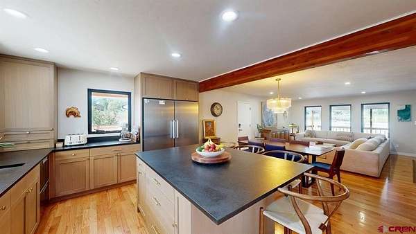Darla Karle, Keller Williams Realty Southwest Associates, LLC, C: 970-903-9333, darlakarle@kw.com, www.darlakarle.kw.com: Modern Ranch Retreat with ADU, Shop & Pasture--Just Minutes from Downtown Durango.Welcome to this beautifully remodeled ranch-style home on three flat, usable acres offering the perfect blend of upscale living, income potential, and rural charm. The spacious 3-bedroom, 2-bath layout features an open floor plan with brand new oak hardwood floors, fresh paint and texture, new windows, doors, trim and baseboards throughout.The chef's kitchen is a showstopper, with white oak cabinetry, brass hardware, leathered granite countertops, and an oversized gathering island. Premium appliances include a double refrigerator/freezer, designer double oven range, two-drawer dishwasher, pot filler faucet, wine fridge, under counter ice maker, and custom range hood. A two-sided gas fireplace with limestone surround adds warmth and elegance to the living space.The primary suite offers double mirrored closets and a luxurious en suite bath with mosaic marble flooring, walk-in shower, and large vanity with LED mirror. The second bath features terrazzo tile, brass accents, and a floating double vanity with LED mirror. Step out to a raised patio with open views and a mini orchard with a variety of fruit trees. Also enjoy a fenced pet enclosure and fresh landscaping. Square footage is home and ADU combined.Bonus Features:800 Sq Ft ADU: Brand new with full kitchen, butcher block counters, built-in dining, washer/dryer, and spacious bath with on-demand hot water.35' x 68' Metal Shop: Includes two versatile storage rooms ideal for hobbies, gear, or office space.An additional 12X26 storage area with private entrance can be converted into a multi-functional space. Pasture Potential: fenced land perfect for livestock or hobby farming.Natural Gas & Paved Roads: Rare conveniences for country living.Prime Location: 13 min to downtown Durango, 6 min to Mercy Hospital, 8 min to Durango-La Plata County Airport.Whether you're seeking multigenerational living, rental income, or a private retreat with room to roam, this property delivers.Don't miss out on this turnkey opportunity to live luxuriously with land, lifestyle, and flexibility.
