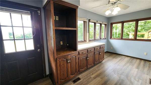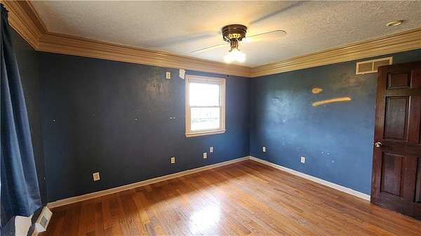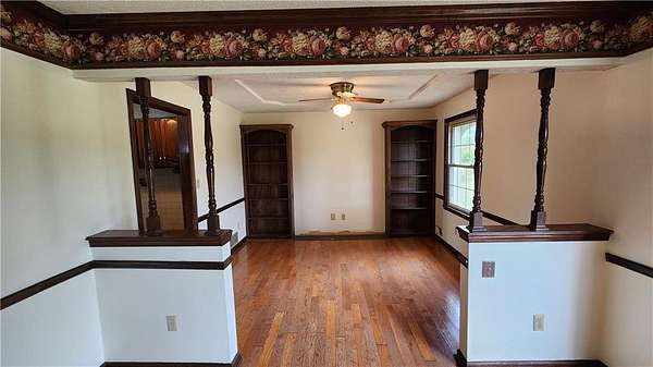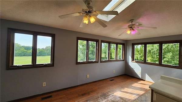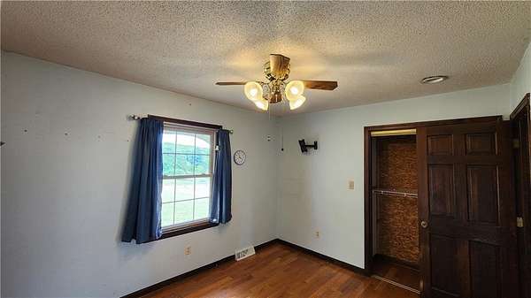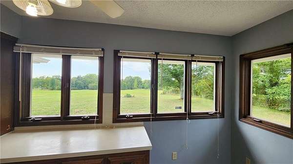 Check out this beautiful 10-acre property with pasture, mature trees, and a spring fed pond...a hunter's dream! This large home features an upstairs apartment with kitchenette, walk-in cedar closet, full bath, and separate entrance--great for guests or rental income. Recent updates include newer exterior paint, electrical panel, furnace, and A/C and a tankless water heater. Great breakfast nook on floor one and floor three, with beautiful landscape views. The home is full of wood flooring & LVP, no carpet. The family room hosts a vaulted ceiling and a large wood burning fireplace with gas start, and gas logs. Attached 2-car garage, plus detached shed. Unfinished basement with safe room. Peaceful setting with room to roam! Affordable utilities!!