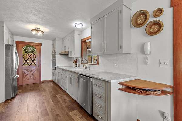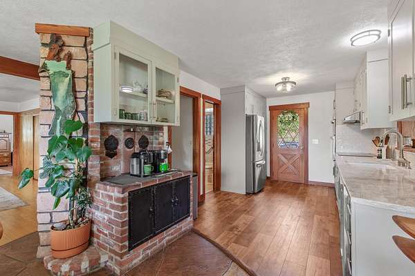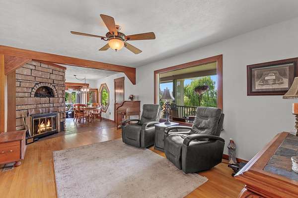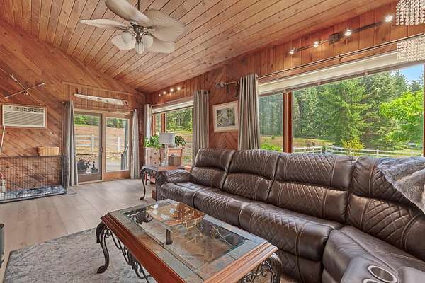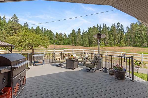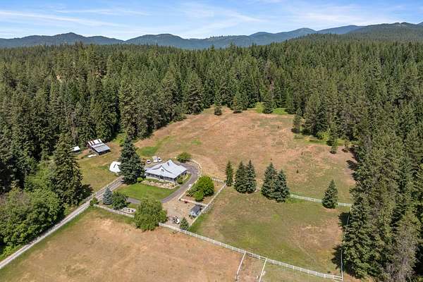Discover the perfect blend of classic charm and modern comfort in this beautifully updated 4-bedroom, 2-bath 1960 Craftsman home. Nestled on 9.3 secluded acres, this property offers the peace of country living just a short distance from Newman Lake. Inside, thoughtful updates include a renovated kitchen with stainless steel appliances, quartz countertops, and custom cabinetry, as well as refreshed bathrooms featuring stylish fixtures and tile work. Hardwood floors with vintage trim preserve the home's warm, timeless appeal. The spacious floor plan offers room for everyone, with generous bedrooms, 2 cozy family rooms, living room with a fireplace, and abundant natural light. Outside, enjoy tranquil mornings or evenings on the large front porch overlooking a stunning mountain backdrop, shop, barn, hot tub, storage shed and room for your horses. Whether you're seeking a serene retreat or simply space to roam, this rare property combines privacy, charm, and convenience in one unforgettable package.