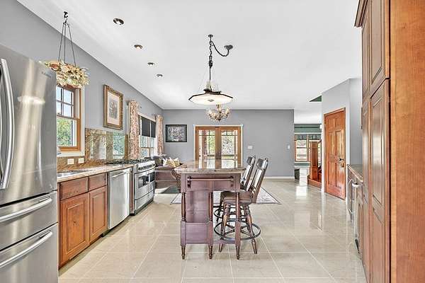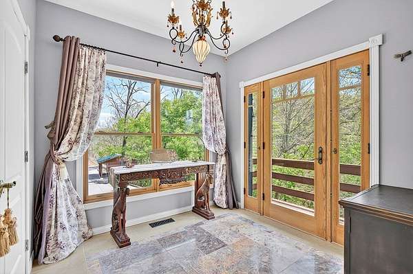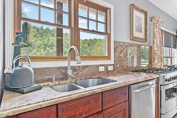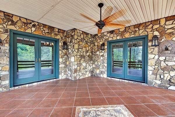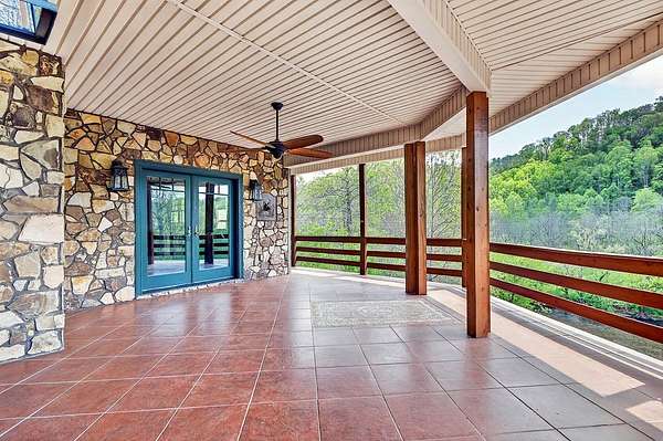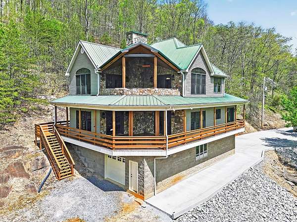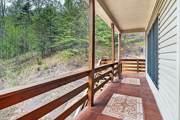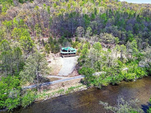 Artists write about it, some paint it, others sing about itthe constantly moving hypnotic essence of a river, its healing properties & the adventures one provides. This impressive home with its chalet-type atmosphere gives you all of that & more with its 993' of river frontage on the North Fork of the Holston River-recognized as one of the best small mouth bass streams west of the New River. Imagine floating down the currents, fishing from its banks or simply meditating while listening to the calming flow of water from your own primary bedroom. Whether you want to make this your full-time residence or just a vacation retreat you can relax knowing that, if needed, you can "live off the grid". With a 260' spring-fed well, 20kw Generac generator, 500 gallon propane tank, & 31 acres of forest, you're ready! And that's just some of the basics. The wrap around deck (featuring multi-level sitting areas-one with a hot tub) from which to view the river and beautiful mountain ranges, oversized (drive through) garage & circular drive, concrete driveway with drainage ports, & 14 x 14 outbuilding which houses 2 potting stations (with granite counter tops) highlight the exterior. And the lovely interior showcases 4 large bedrooms and 3.5 baths; two gas fireplaces with stone surround; hardwood, marble, black granite & ceramic tile flooring; designer lighting fixtures (the chandelier in the staircase was featured in Architectural Digest); lunette transom windows; cast-iron fire back wall features & other subtle design-focused elements. The kitchen is a chef's dream with closet & slide-out pantries, stainless steel appliances including a Heartland gas range with electric oven, custom-built "Rustic Alderwood" kitchen cabinetry, granite counter tops & an island for food prep.