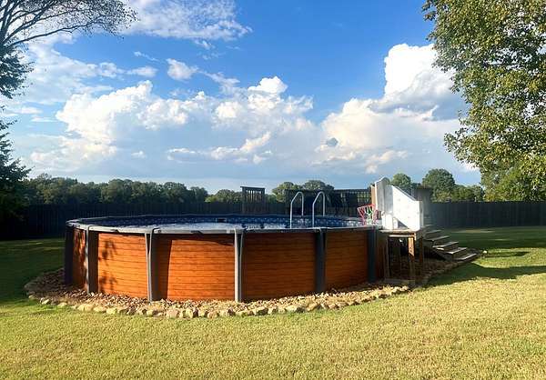 - Above Ground Pool, Asphalt Drive, Fence, Public Park in Area, Storage Building