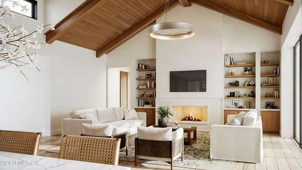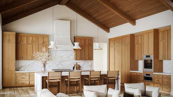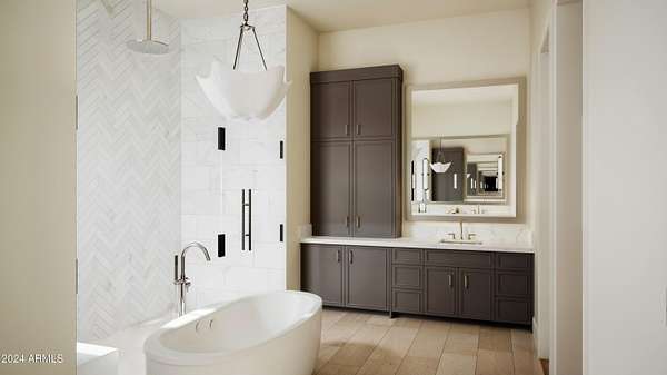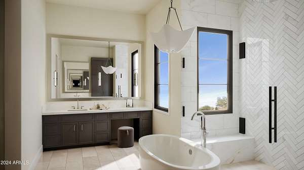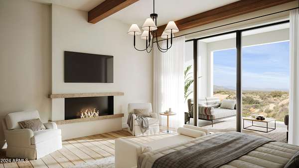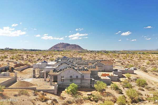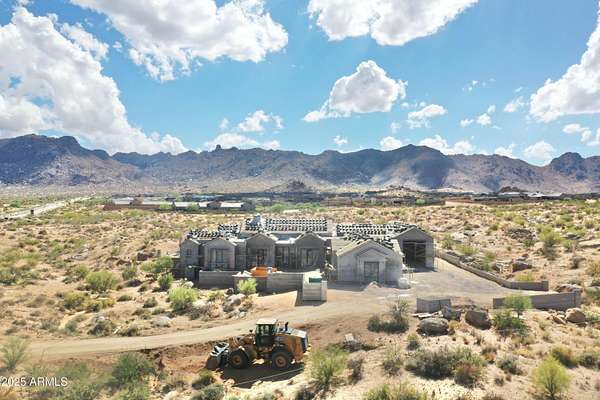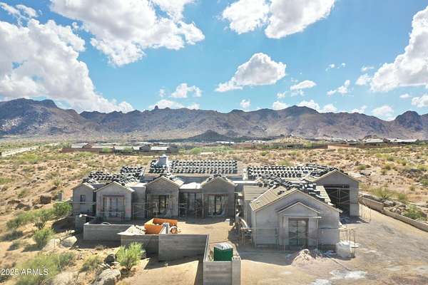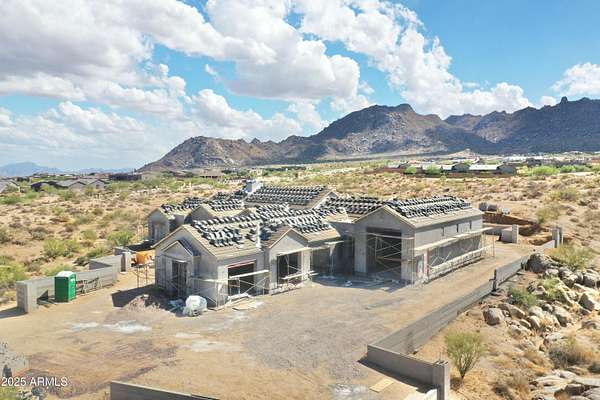 Start the new year in your brand-new home - Move-in ready January 2026! This 5,000 sqft custom contemporary farmhouse by Encore Design Group, is perfectly positioned on a rare 3-acre lot with no HOA, just steps from Tom's Thumb Trailhead in Scottsdale's high desert. Blending bold architectural volume with refined comfort, this home is centered around a vaulted 24' x 24' great room with 15' ceilings and seamless flow to the outdoors. The design features 5 spacious bedrooms, 4.5 bathrooms, a dedicated game/theater room, private home office, and a chef's kitchen with prep kitchen and wine niche. Garage space includes an oversized 3-car (26' x 36') garage plus a 52' deep RV garage with 16' ceilings, ideal for car collectors, RV owners, or hobbyists. The backyard oasis includes an outdoor kitchen with a stone fireplace, custom pool with a separate integrated spa, sunken fire pit perfect for stargazing, an expansive artificial turf zone, lush plantings with mature desert trees, boulders, & revegetated NAOS area, & last but not least a fully irrigated and privately fenced backyard ideal for entertaining and family living. The property is located in a serene desert setting with panoramic mountain views, this property offers unmatched privacy, peace, and proximity to trails, golf, and shopping. Estimated completion early 2026.