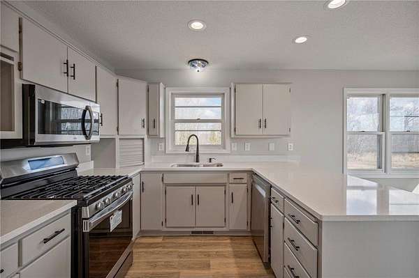 Fantastic 5 room 2 bath home is located just off Hwy 169, minutes outside of Milaca, offering outstanding versatility and visibility. This immaculate, fully remodeled 5-bedroom, 2-bath split-level sits on over 8 acres making it ideal for a home-based business, hobby farm, or future agritourism venture such as a pumpkin patch, apple orchard, or similar operation. From top to bottom, this home has been thoughtfully updated and is truly move-in ready. Recent improvements include a new roof, new siding, updated windows, new concrete driveway, new furnace, new water heaters, new carpet, fresh paint, updated baseboards, and more. The open, inviting interior features fantastic bathrooms with custom tile, granite countertops, stainless steel appliances, and a spacious family room perfect for gathering and entertaining. Enjoy the private deck off the primary bedroom overlooking the scenic acreage. The property also boasts a 2-car attached garage and a massive pole barn/pull shed with heated space and office area large enough to accommodate equipment, toys, livestock needs, or even semi-truck storage. Excellent Hwy 169 road frontage provides both convenience and exposure.