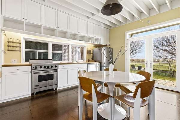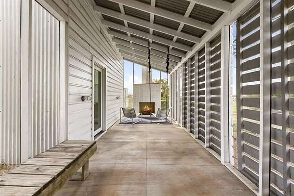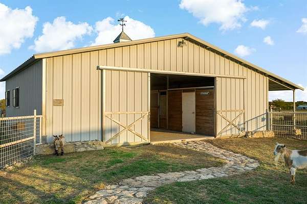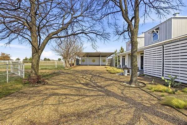 Welcome to 2436 Big Sky Trail - an architectural retreat set beneath wide North Texas skies. Designed by award winning architect Max Levy, this Prairie style home rests on an ag exempt, fully fenced 4.65 ac property and has been featured on HGTV and in multiple design publications. Built in 1999 and spanning 2,113 SF, the 3BD, 3BA residence was thoughtfully composed to complement the surrounding landscape. Pella Architect Series windows and doors frame long views of pasture and sky, creating a seamless connection to the outdoors. The lower level is designed for gathering, bringing the dining, living, and kitchen areas together in an open layout. Stained concrete floors run throughout the main level. The kitchen features crisp white cabinetry with generous storage, a Viking cooktop, and stainless steel appliances. The fireplace anchors the living area and creates a natural gathering point. Upstairs, bedrooms are arranged as individual suites, offering privacy while maintaining the home’s architectural character. The screened in porch with its own fireplace extends the living space outdoors and provides a relaxed setting to enjoy the land year round. Beyond the main residence, the property offers additional flexibility. A 312 SF ADU provides space for guests, a studio, or private office with shiplap walls, full cell insulation, mini split HVAC, and custom door and window detailing. The four stall barn includes a tack room, wash bay, electrical, and lighting. Animal shelters, dog run, garden space, and fire pit enhance the usability of the land. Ponder offers expansive country living just northwest of Denton while remaining within convenient reach of Dallas and DFW Airport. The adjoining 5.26 ac lot is also available for purchase, offering the opportunity to expand to a combined 9.91 ac, build an additional residence, or preserve greater privacy.