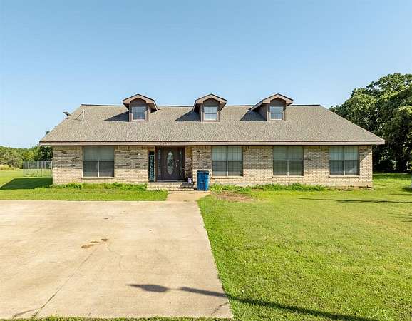NEED SPACE FOR EVERYONE? Affordable, spacious BRICK HOUSE on almost 2 acres with 5 bedrooms, 3 FULL baths, 2 LIVING AREAS, and a 975 sqft GARAGE! Primary suite located downstairs with walk in closets, attached sitting room with exterior door, and ensuite bath! Upstairs living area could be used as a 6th bedroom or office. The second floor has 2 bedrooms and a living area set up perfectly for a private suite and ideal for multi-generational families! Huge kitchen with butlers pantry attached. Foundation work has been completed and comes with a lifetime transferrable warranty. HVAC units are newer. RV plug already installed. Access to fishing pond behind the house! The size of every room will not disappoint! Put this one on your list to see!