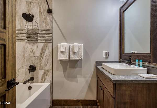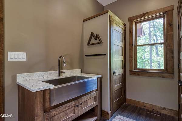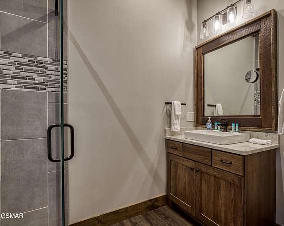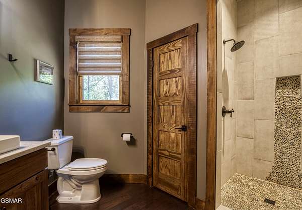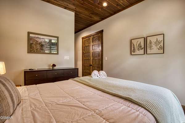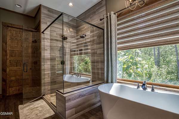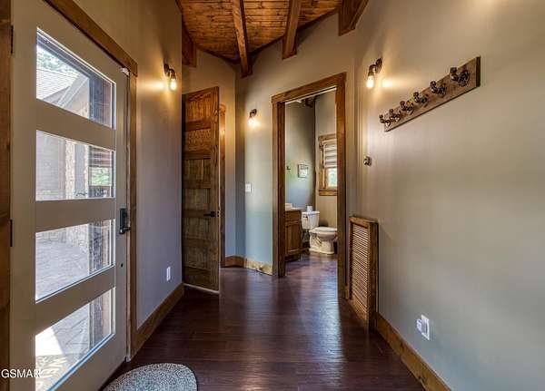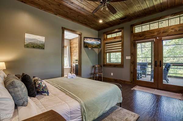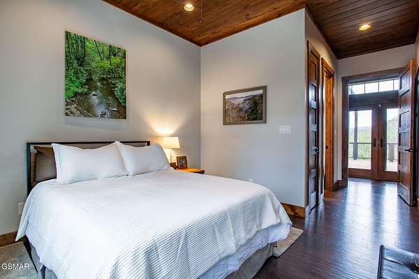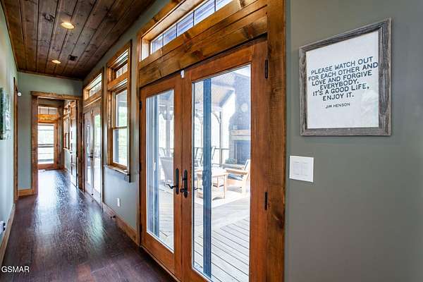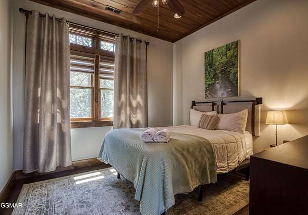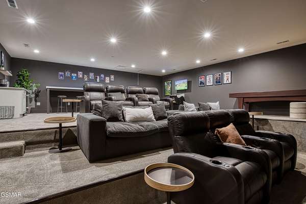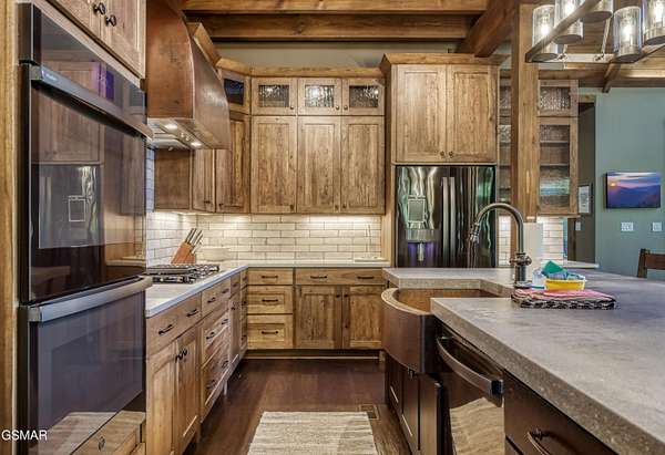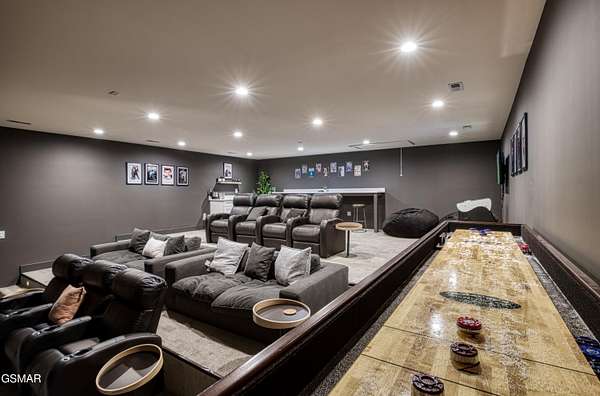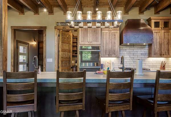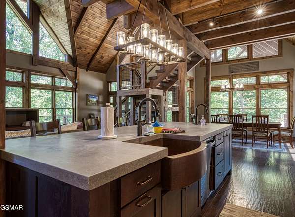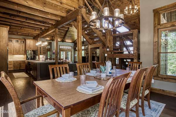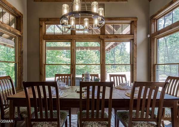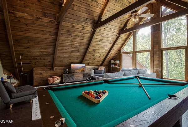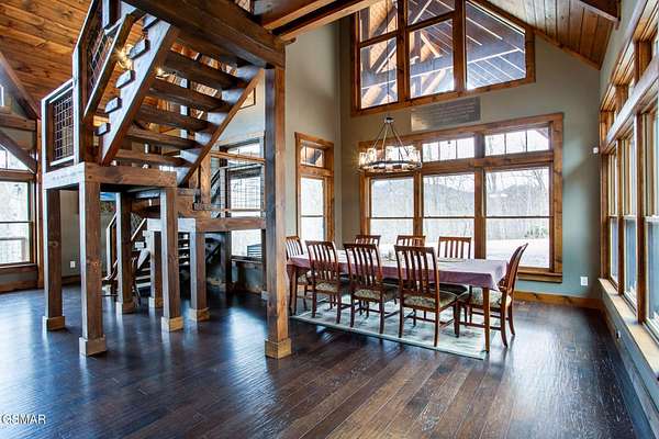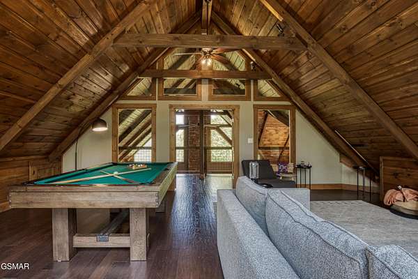 Where luxury meets Smoky Mountain grandeur. Mountain Living at Its Finest. Privately positioned at the center of 15 acres, this timber-framed luxury mountain retreat delivers exceptional craftsmanship, privacy, and panoramic mountain views. Built in 2020 with no expense spared, the home is designed for refined indoor-outdoor living and elevated entertaining. The residence features three en-suite bedrooms, a spacious loft currently used as a game and entertainment space, and four spa-inspired bathrooms. A designer kitchen anchors the main living area with solid-surface concrete countertops, premium appliances, and an oversized walk-in butler's pantry, offering both functionality and luxury. Outdoor living is truly resort-level. A private owner's deck includes a bubbling hot tub, stacked-stone gas fireplace, and TV. The primary deck offers both covered and open-air living, highlighted by a stacked-stone wood-burning fireplace, outdoor TV, and sweeping mountain views. Multiple fully opening interior doors create a seamless indoor-outdoor experience ideal for entertaining. An 800+ square-foot custom designed private media room, fully heated and cooled, provides an exceptional entertainment space suitable for year-round enjoyment. Architecturally, the home showcases a refined timber-frame design blending rustic mountain character with modern luxury. Exposed beams, stacked-stone accents, and expansive glass frame the surrounding Smoky Mountain landscape while delivering a dramatic yet warm aesthetic. Currently operating as a successful short-term rental, the property offers an excellent rental history and an established base of repeat guests already in place-providing immediate income potential without sacrificing its appeal as a luxury second home. Additional features include an integrated whole-home generator, private gated entrance, and a comprehensive whole-home water treatment system with mechanical filtration, brine tank, ultraviolet purification, and reverse osmosis system with a three-stage filter and four-gallon storage tank. A striking 30' x 30' covered motor court creates a grand arrival experience with full timber framing, accent lighting, oversized ceiling fan, and stained, stamped concrete flooring. The property is accessed by a long, illuminated private drive and includes an outdoor storage shed for added functionality. A rare offering combining privacy, architectural distinction, and proven performance-ideal as a premier second home or high-end short-term rental investment in the Smoky Mountains.
