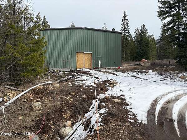 Est $3,465/moProperty has new barn building 40' x 60', a 400 feet deep well that brings approximately 30 gpm (well pump and pump house are not installed), and new septic installed- see under documents or check with Panhandle Health for more info. Power hookups are located on the property as well. New taxes include land plus new building are shown. Great investment and opportunity to build your dream home on 5 acres. Easy access to property, level, and full of mature trees.
