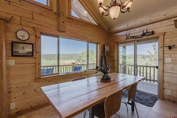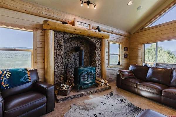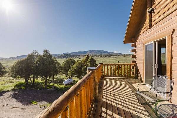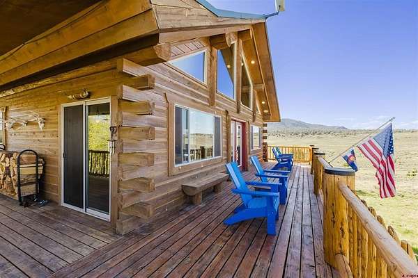 Jerilyn Burton, Sherpa Real Estate, C: 713-819-0411, jeri.burton@yahoo.com, www.crenmls.com: Stunning mountain views from this Colorado log home situated on 35 Acres! This 3/3.5/2 property has expansive mountain views! Almost 3,000 square feet of living space. Main level has an open kitchen, living and dining area with vaulted ceilings and a fantastic wrap around deck for your out-door enjoyment. The great room is flooded with plenty of light in the early morning which accents the round log structure and high ceilings. A gorgeous hand stacked rock enclave hosts a free standing and efficient wood stove. On the main level you'll find the primary suite with a private balcony, laundry room, office space, second bedroom and bath. Downstairs offers a very usable private living space, with a mudroom off the entrance and half bath. In addition, the downstairs offers a separate living space with a kitchenette, third bedroom, bath and exercise room, which compliments this space and creates a fantastic private apartment style set up for guests. Radiant heat was redone in 2023. Loafing shed with tack room and a fenced area for horses or mules. Colorado living at it's finest! The Ranch has multiple private access points to the National Forest for your hiking and hunting excursions. Wildlife is plentiful! Seasonal pond! During migration you could see hundreds of elk at a time.